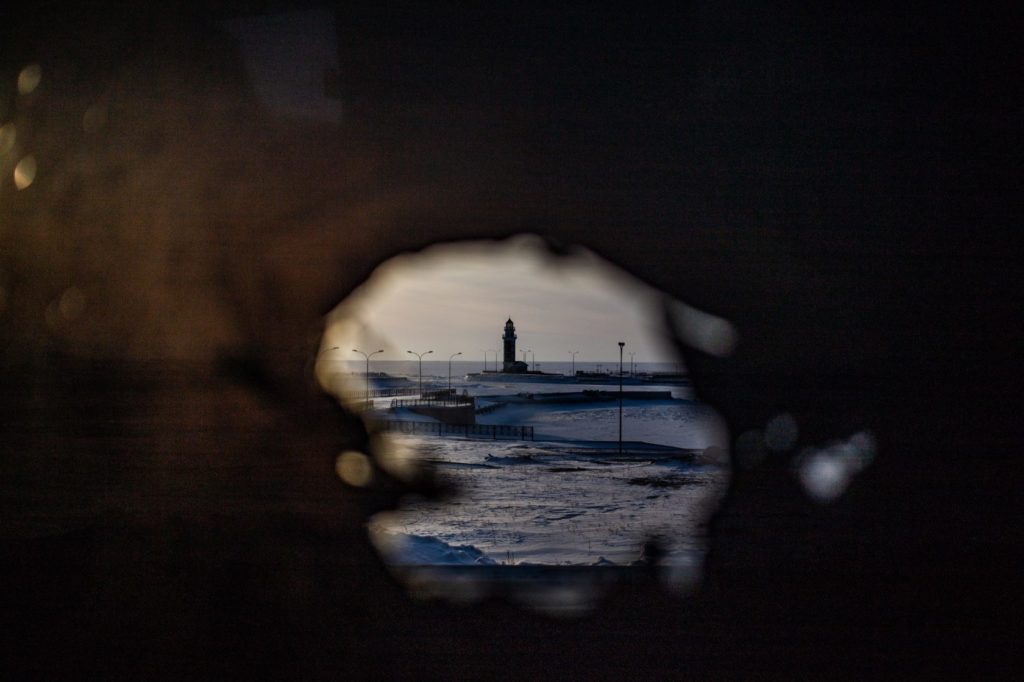 — Идите в администрацию, если там разрешат — пущу вас на территорию, — сообщает охранник, высовываясь из будки. — Только вы всё равно не проедете и не пройдёте, потому что всё снегом замело. Его всю зиму не чистили. Для кого чистить — народу нет? Да и смотреть здесь нечего, кроме маяка. Но туда не пускают. Если хотите отдохнуть, езжайте лучше в Горячинск. Все туда едут.