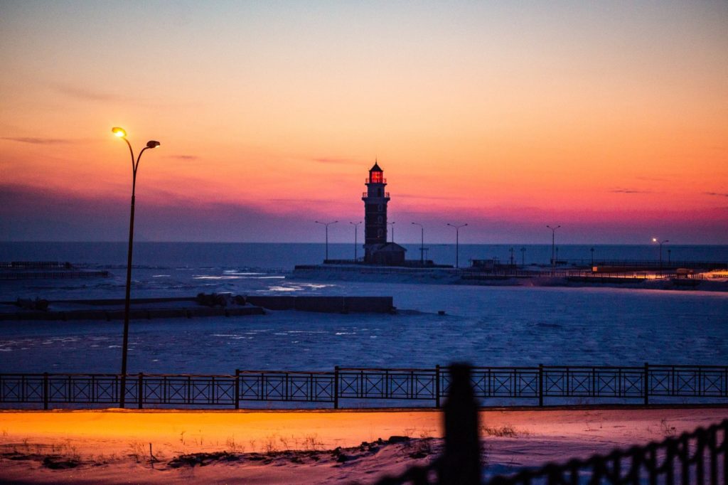 За чугунной решёткой до самого берега тянутся бетонные дорожки. Вдоль дорожек часто натыканы фонари. У некоторых из них уже разбиты плафоны. На косе — маяк, работающий по ночам. Правда, непонятно, для кого он светит зимой. Байкал покрыт льдом, и корабли не зайдут в порт до поздней весны.
