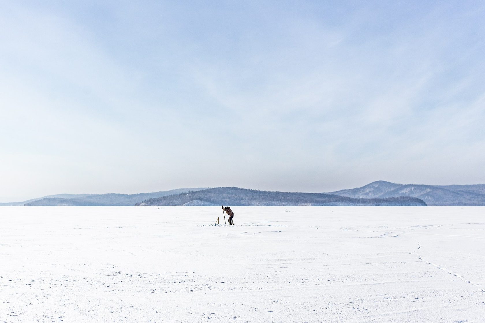 В темноте передвигаться по Байкалу нужно осторожно. Лёд в нынешнем феврале уже плохой, то и дело возникают пропарины. Ледяное полотно подтаивает снизу, становится тонким. Наступишь на такое место — провалишься. Машины уходят под лёд, в прошлом году было больше 50 случаев. Роман с напарником год назад тоже чуть не утонули. Хорошо, рассказывает герой, ехали с открытой дверцей и вовремя увидели, как лёд под машиной начал проседать. Водитель был опытный: вырулил, не растерялся.