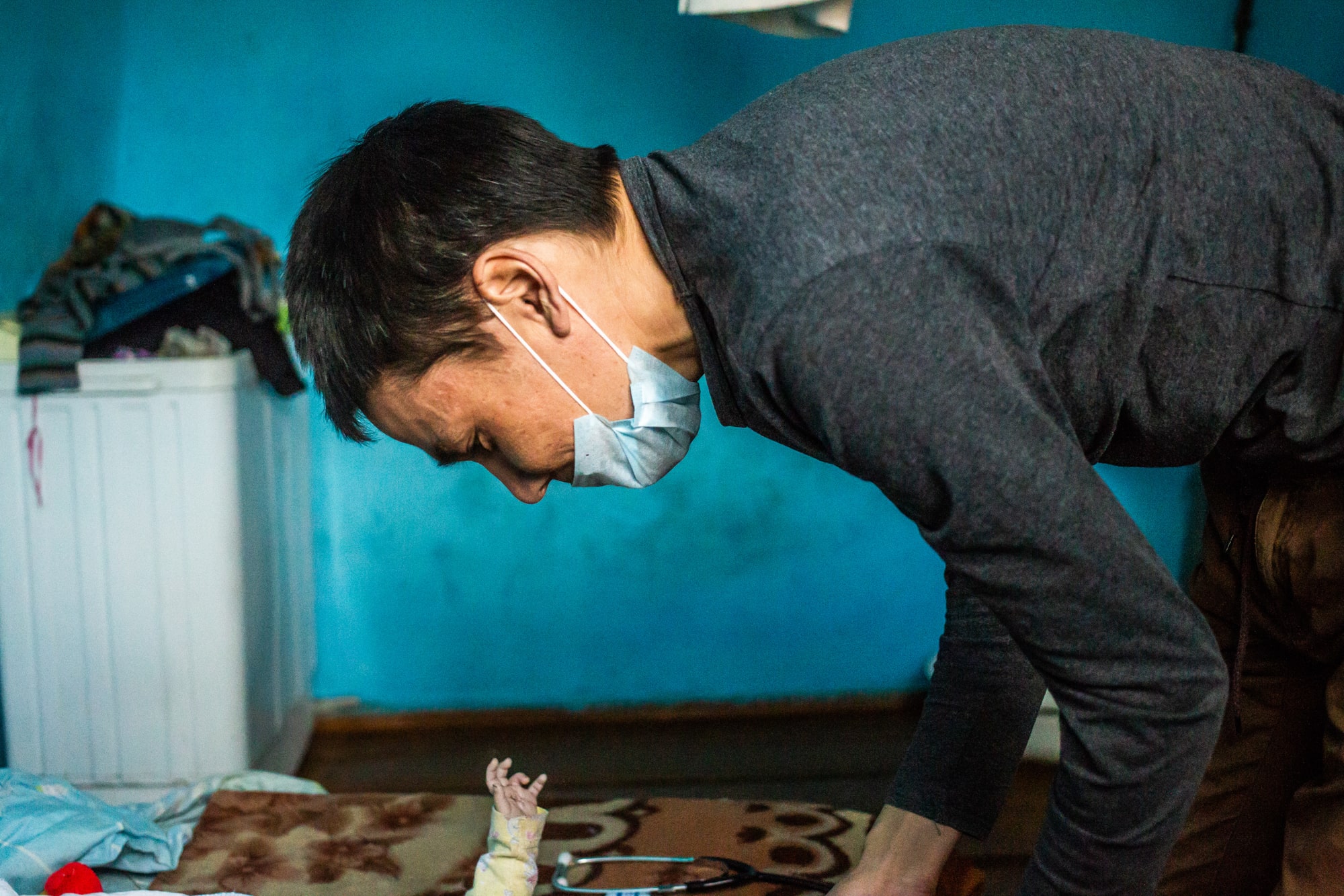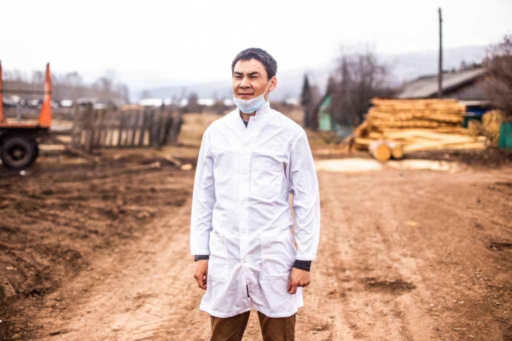 Вот и в апреле субботним днём Николай отправляется на очередной обход. Невысокий и худенький 30-летний фельдшер легко перемахивает через коровьи лепёшки и лужи на пути. В шапочке с помпоном, приталенной куртке и модных брюках песочного цвета его легко можно принять за студента из города, который приехал в деревню на каникулы. Веса его фигуре придаёт массивный красный портфель с множеством карманов — сумка фельдшера.
