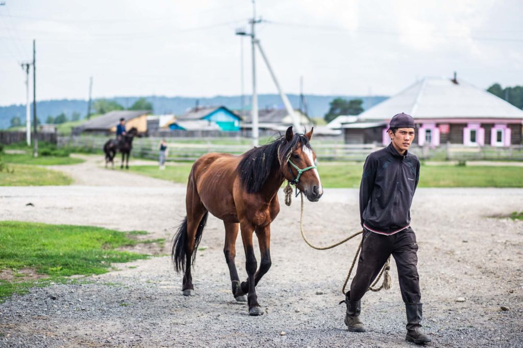 Деревня стоит почти пустая, навстречу иногда попадаются только молодые люди верхом на конях. Так они передвигаются по посёлку. «Коней держат просто так, потому что любят», — объясняет нам Наталья Дугарова. Она единственный на деревню соцработник, у неё на попечении шесть стариков. Сейчас она не заходит к ним в дом и не убирается там, как обычно. Только приносит продукты и оставляет у входа. «Пусть лучше они потерпят без уборки, чем заразятся», — говорит Наталья.