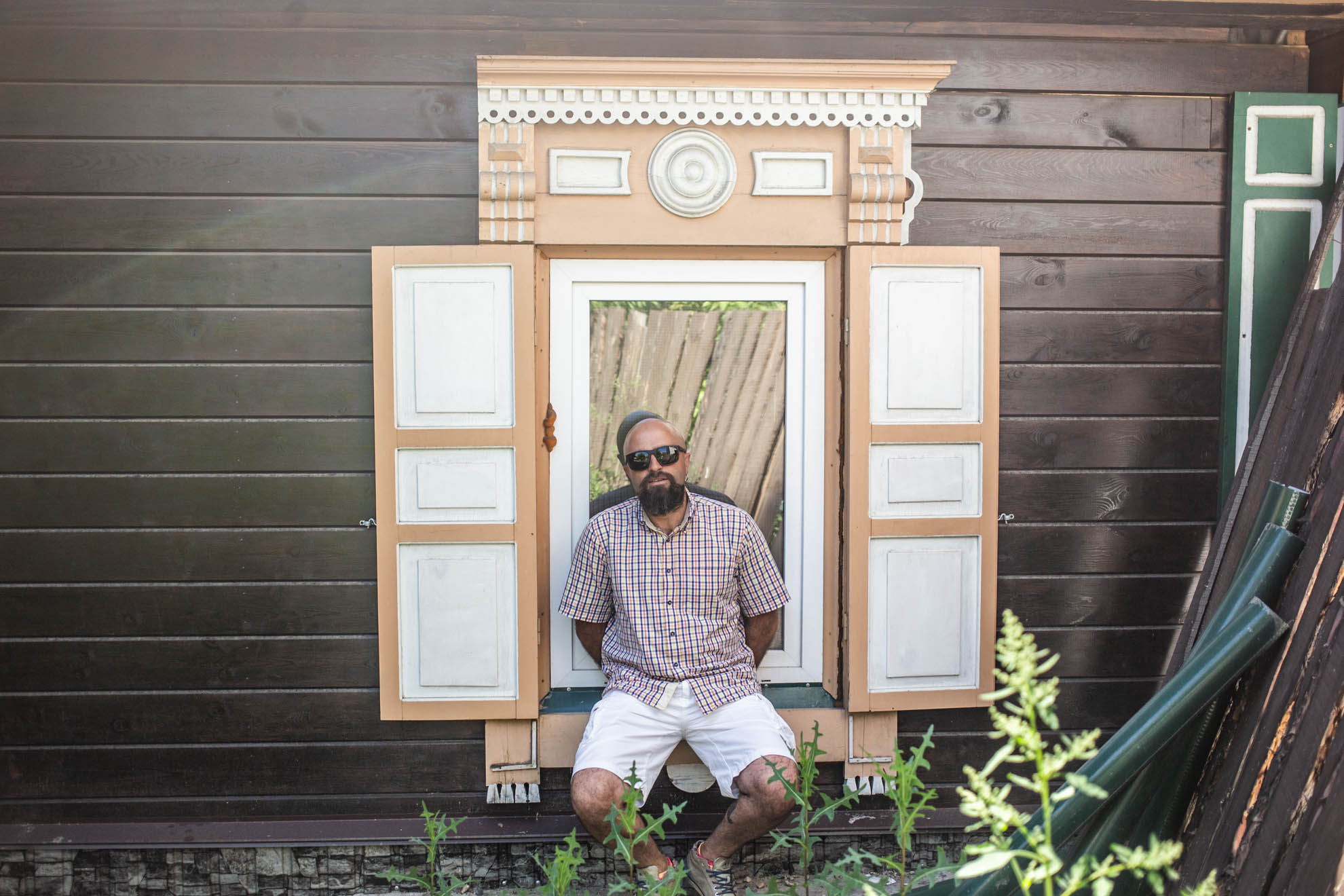 Во дворе хостела поставил старые ставни, которые во время реставрации рабочие сняли с окон и бросили во дворе. «Они трушные (родные — ЛБ) были, выше человеческого роста. Кованые гвозди, петли, — говорит Николай. — Туристы очень любили с ними фотографироваться. Даже иркутяне заходили во двор сделать селфи».