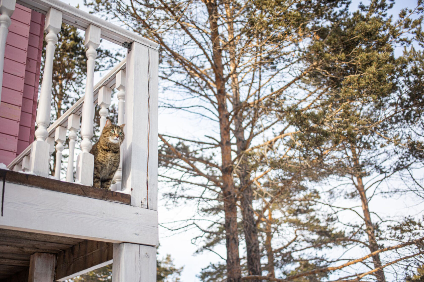«А мы не рубили деревья, хотя могли: это частная собственность, — вспоминает Плохова сейчас. — Но какой в этом смысл? Мы искали место, где есть деревья, вода — зачем нам рубить? Тут дом-то построен так, чтобы не нарушить ничего, он просто „втюхан“ в деревья», — она указывает рукой на вход в дом. Перед крыльцом «розового дома» действительно растёт раскидистая сосна. На уровне роста человека ствол раздваивается, и уже две лысеющие макушки возвышаются над скошенной крышей.