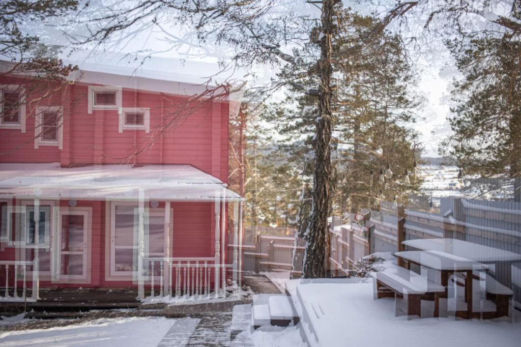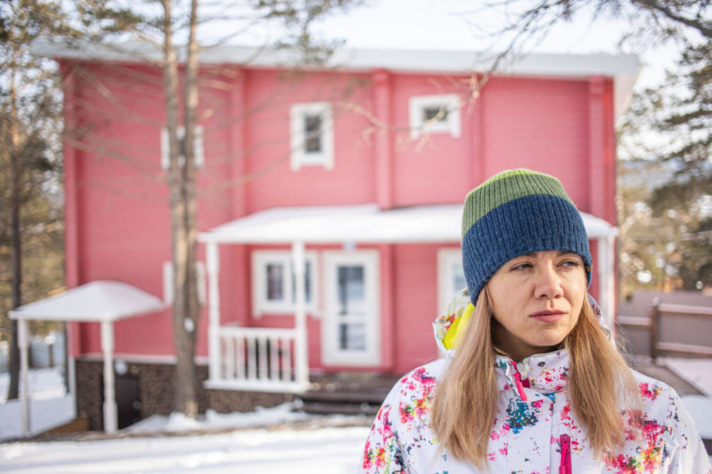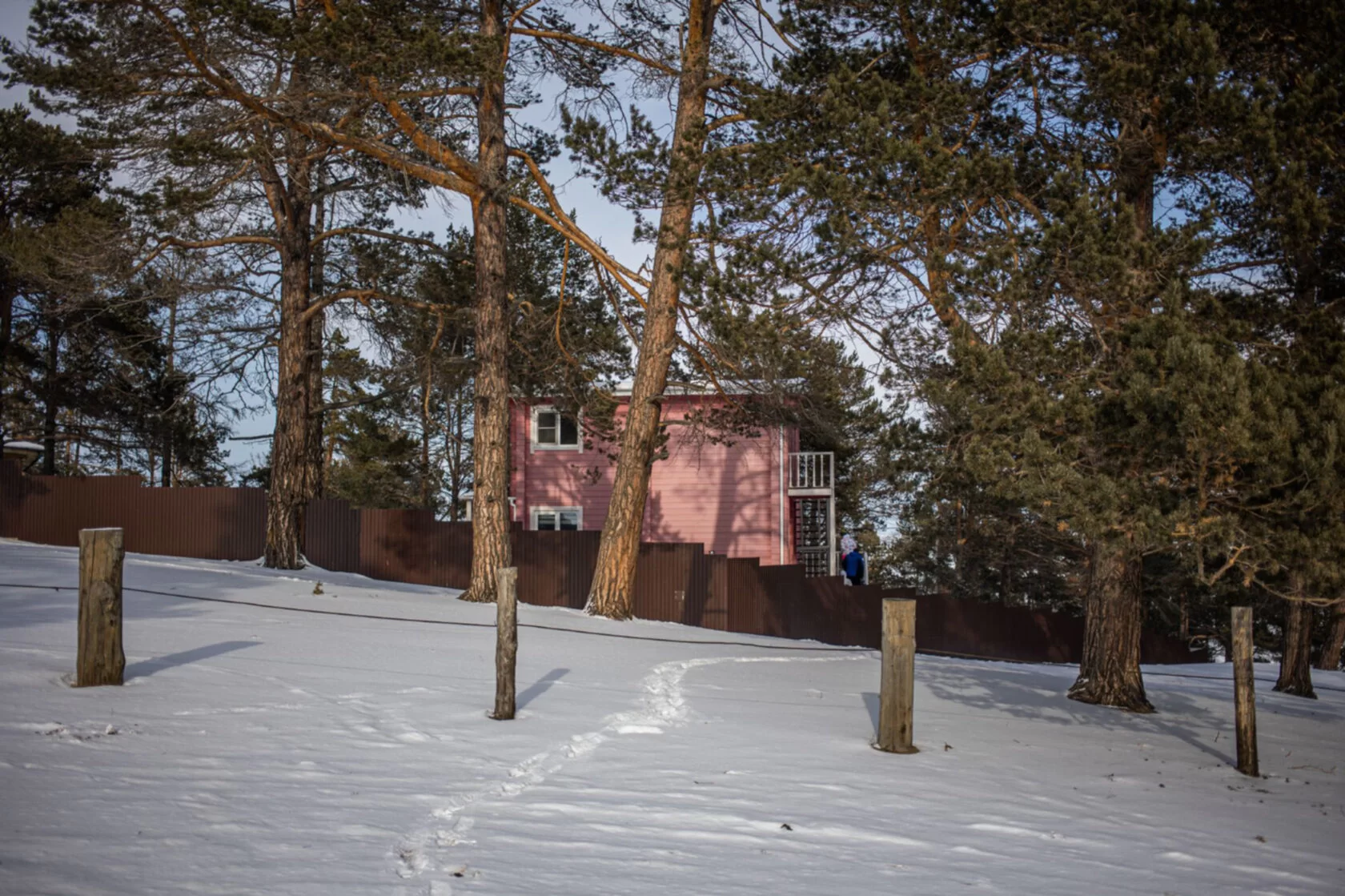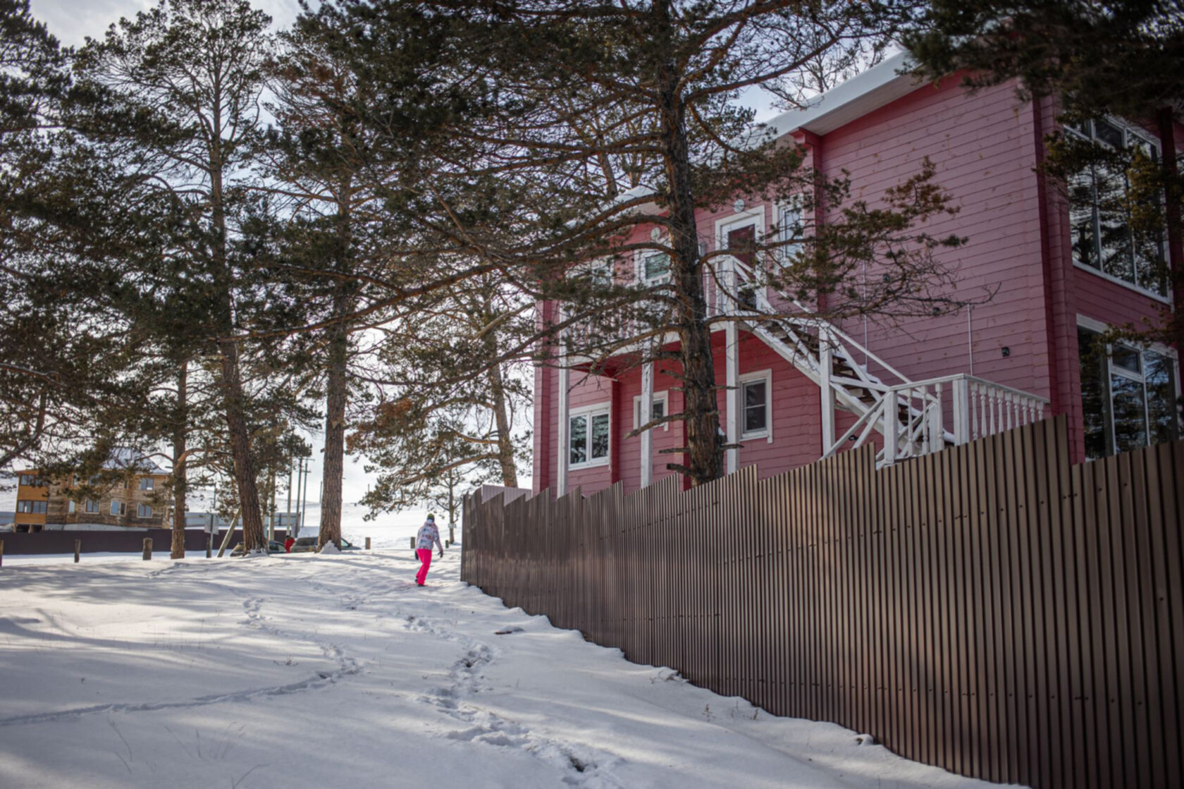 Три с половиной года назад на краю леса построили двухэтажный дом. Он напоминает домик для барби: стены покрыты краской нежно-кораллового цвета, в панорамных окнах с белыми рамами отражаются высокие сосны, густо растущие на участке у дома. Фигурные белые столбики обрамляют крыльцо под козырьком. Из окон дома виден пляж Сарайского залива, который туристы называют «байкальской Ривьерой»: настолько этот пляж похож на южные острова с мелким белым песком и кристально чистой голубой водой.