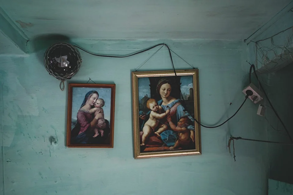Музыкальный канал — любимый из бесплатной цифровой двадцатки. Пластиковая каталка, армейский джип, бык с разорванным боком и один синий карандаш стоят на полке с игрушками, там же валяется зажигалка. Кристине всё это детское добро не интересно: она не хочет читать книгу, не хочет фотографироваться, а когда сестры начинают её уговаривать, прячется под кровать.