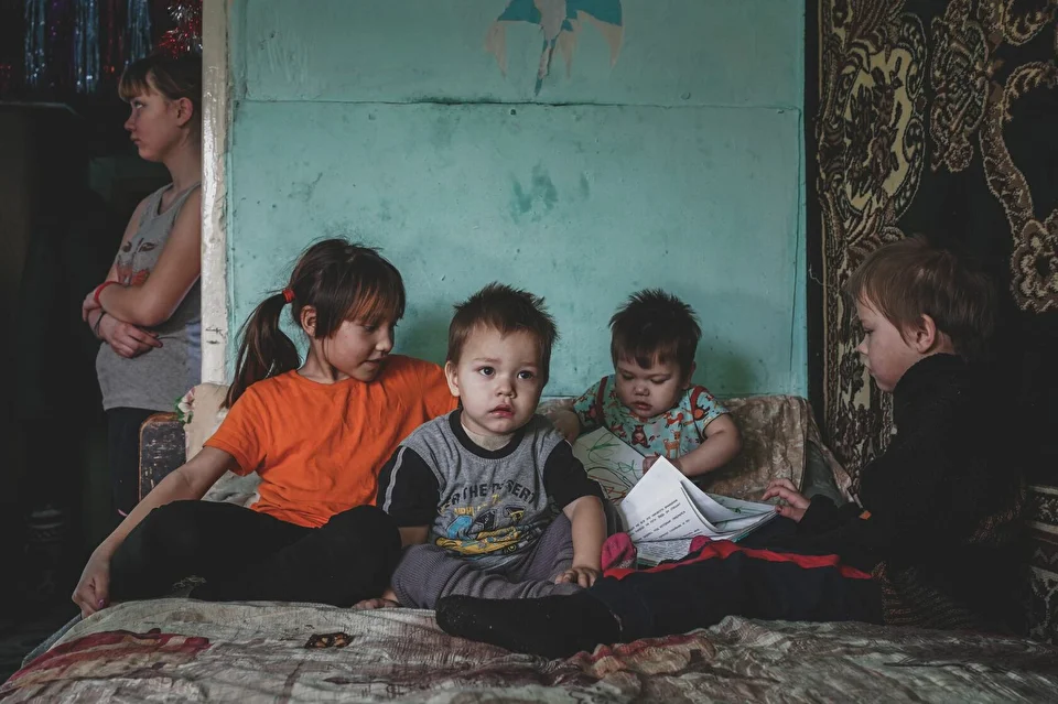 Семья из семи человек живёт в доме, в котором есть кухня и две комнаты без дверей. В одной из комнат стоит разложенный диван и двухъярусная кровать. В другой — одна большая кровать и телевизор, который занимает детей каждый день. Зимой они редко выходят гулять: ленятся одеваться в тяжёлую одежду. Дома им разрешают ходить в колготках и не заплетать волосы.