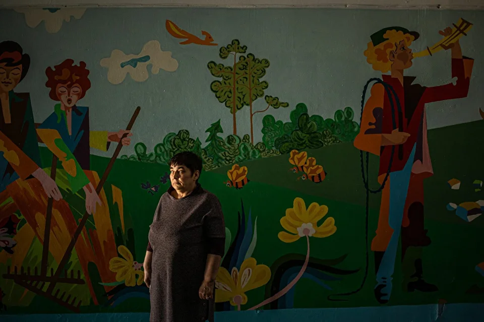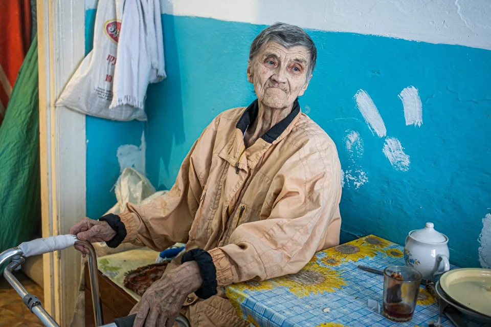 Во втором подъезде живёт 83-летняя Галина Колмакова. Она передвигается с помощью металлических ходунков. Сын хотел забрать её к себе, но она отказалась. «Надела шапку, платок и печку топила, мне дрова от администрации привезли, — говорит Галина Петровна. — Я так намёрзлась за свою жизнь, что уже ничего не боюсь. 40 лет работала на ГОКе „Мамслюда“, почти всегда на улице».