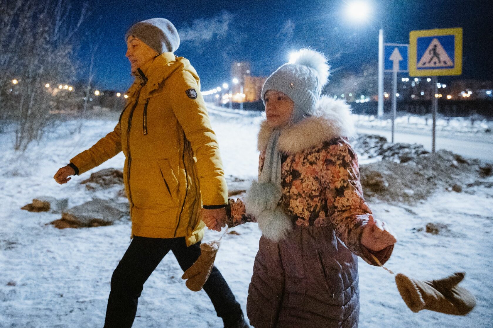 Полчаса езды, ещё 15 минут пешком — и Аня оказывается в школе. «В непогоду это расстояние для нас как дорога через ад. Там сильный ветер, идти нужно по колдобинам среди машин, когда на улице минус 30, колючий снег, промерзаешь до костей. Детям тяжело», — рассказывает Лариса. Автобус в её школе забирает детей только из одного района — Ново-Ленино.