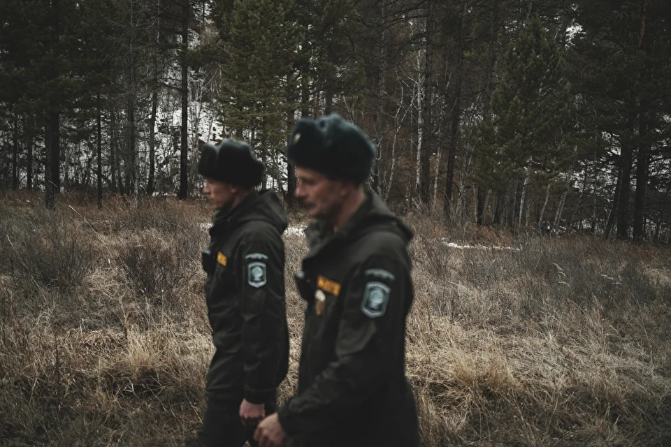 После семейного обеда оба Сергея Красикова собираются в заказник. Поэтому они в полном обмундировании и похожи друг на друга, как близнецы. Тёмные футболки с логотипом Байкальского заповедника, форма цвета хаки. На брючном ремне у обоих — наручники. У Сергея младшего — ещё складной нож. Красиковы надевают одинаковые куртки, тоже тёмного хаки. «Форма у нас всегда одна, и зимой и летом, — говорит старший-Красиков. — В холод приходится утепляться, пододеваем что-нибудь». У Александра Красикова выходной, поэтому он в домашнем.