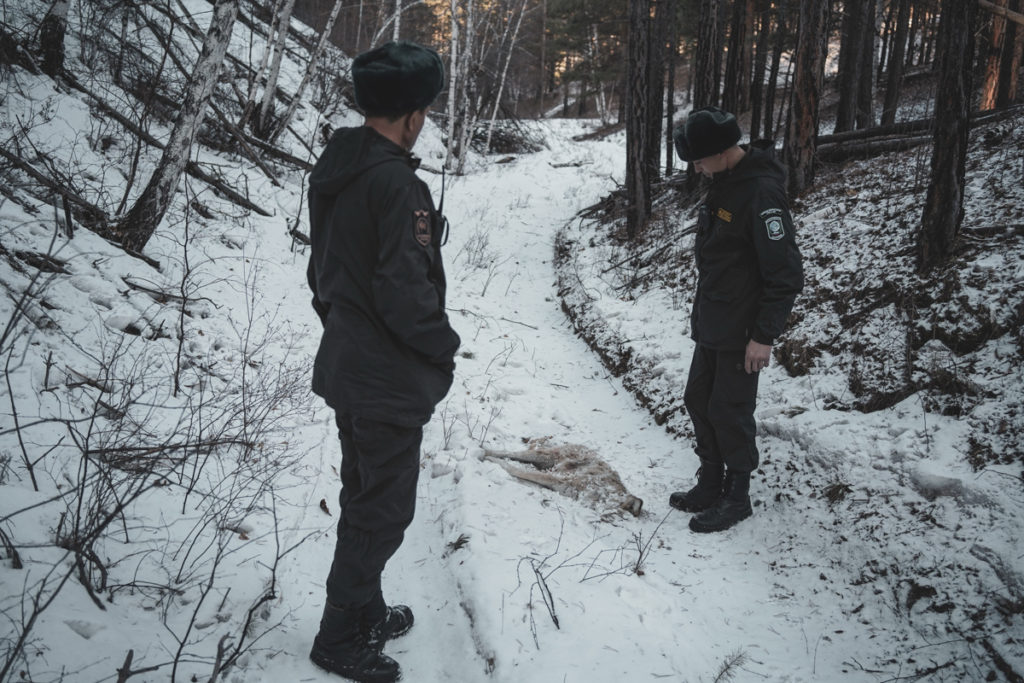 У браконьеров нашли две туши косули. Одна была в УАЗе, другую охотники безуспешно попытались спрятать в лесу. Инспекторы показывают фотографии задержанных. Несколько грузных мужчин тяжело смотрят в камеру. «Видите, у всех — следы крови на одежде, — говорит старший Красиков. — Двое вообще были измазаны с ног до головы. Только у водителя одежда чистая».