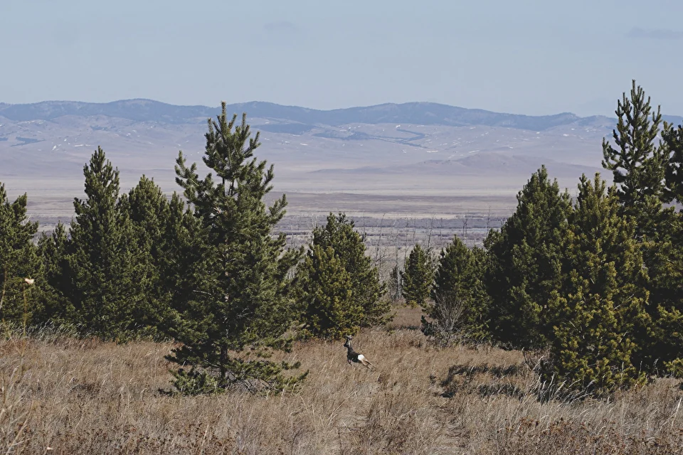 В Алтачее несколько тысяч косуль. Их группки встречаются постоянно. От звуков инспекторской машины косули убегают, высоко подпрыгивая и, кажется, даже зависая в воздухе. «Вон, три белые жопки, смотрите, — показывает Красиков-младший на золотую опушку. — А вот ещё четверо».
