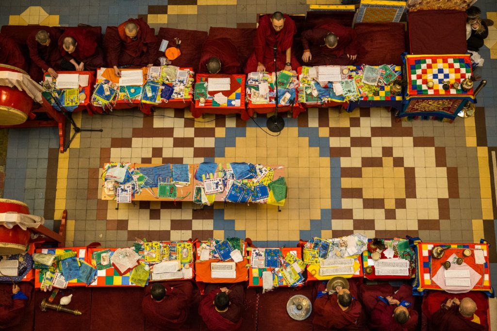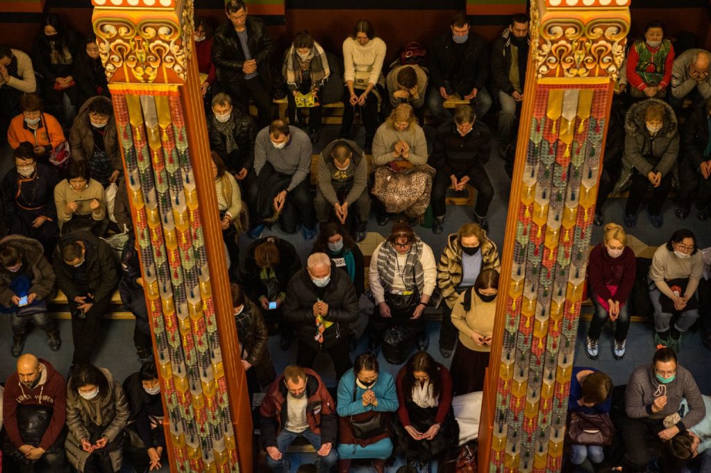 Воскресенье. В дацане идёт праздничный хурал. Опоздавшие робко заходят в зал, стараясь не поворачиваться спиной к алтарю, кто-то ждёт окончания молебна в вестибюле, надеясь поговорить с ламами. После хурала можно подняться к ним на третий этаж — за консультацией. Со стороны это напоминает приём у врача: по периметру этажа — двери кабинетов лам, у которых занимают очередь посетители. В центре зала — квадратное смотровое окно, которое позволяет увидеть дуган.