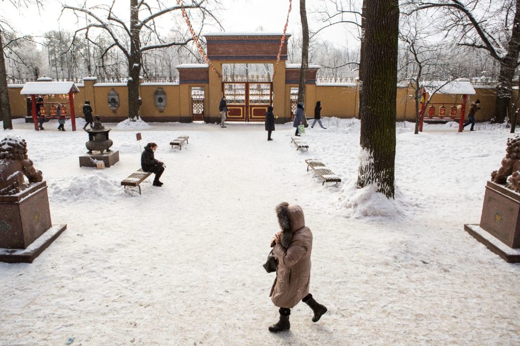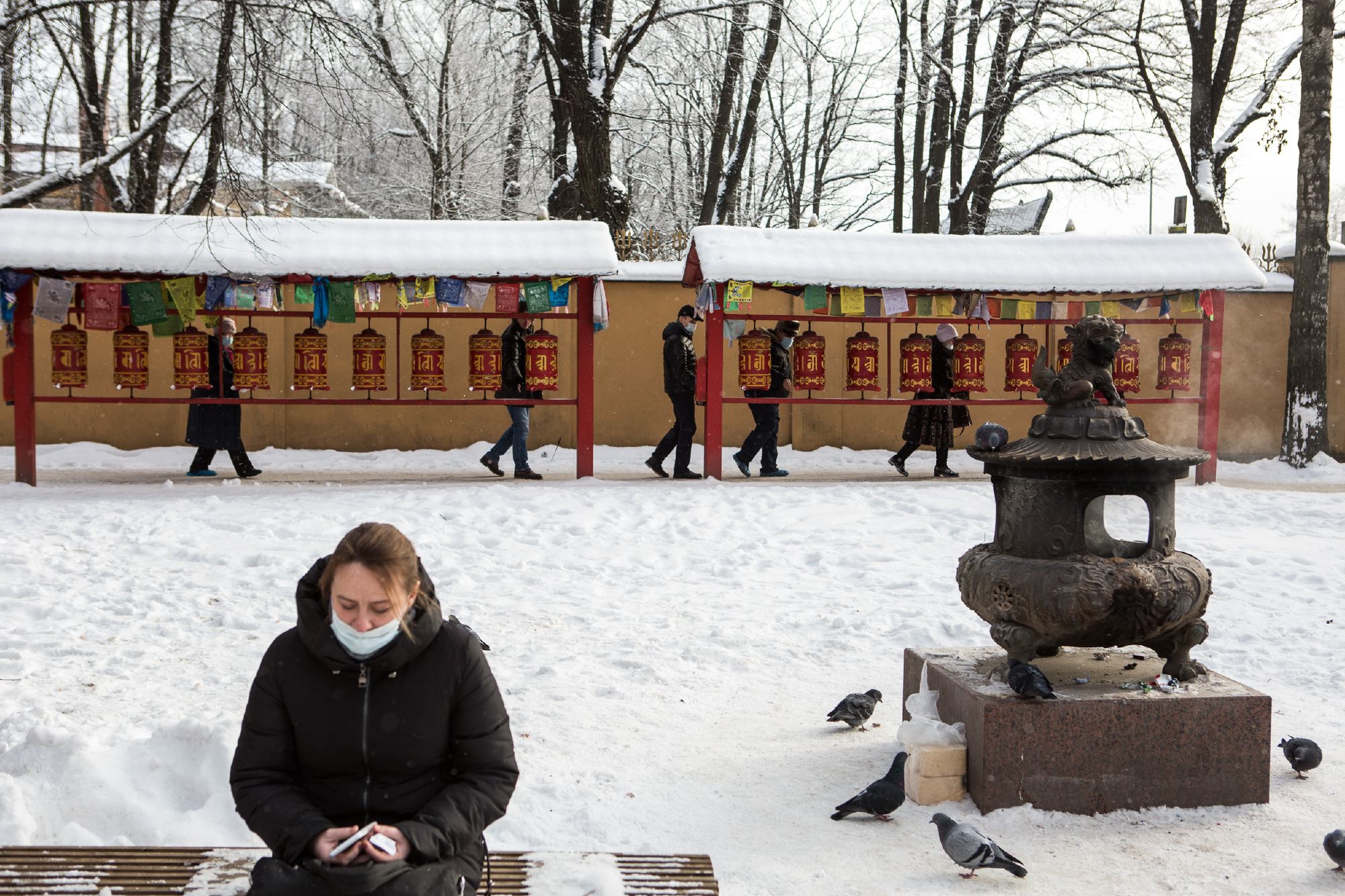 Восточный Новый год петербурженка Венера очень боялась пропустить, потому в субботу, 13 февраля, пришла на утренний хурал на полчаса раньше. Она татарка, себя считает викканкой (это форма язычества — ЛБ), но это не мешает ей посещать дацан. В этом году она впервые пришла в дацан на молебен. До этого бывала здесь на экскурсиях. Венера говорит, что находит здесь «спокойствие и умиротворение» и что хотела бы всерьёз познакомиться с буддизмом.
