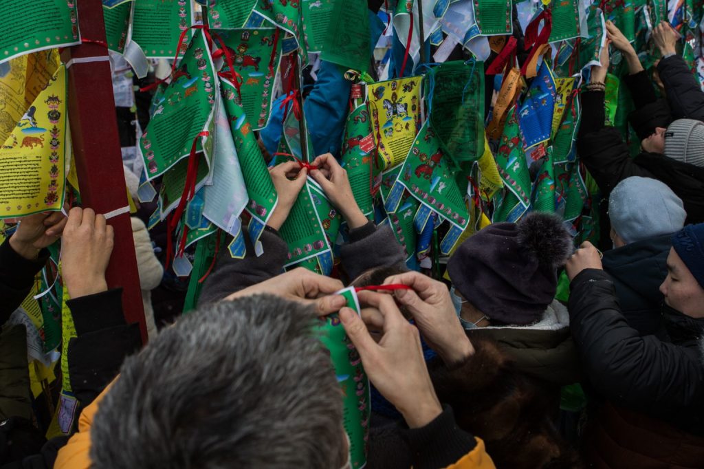 Наступил Сагаалган — празднование нового года Белой Металлической Коровы. После молебна желающие в беседке дацана привязывают молитвенные флаги удачи — хий морин («коней ветра»)