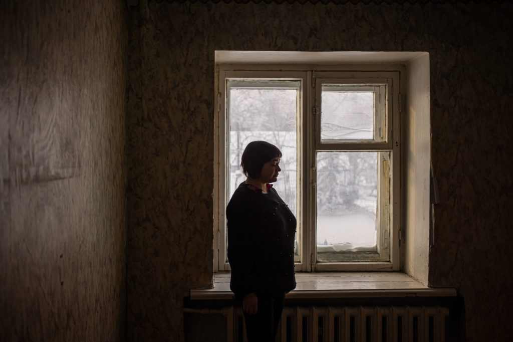 54-летняя Ольга Власова живёт в этом подъезде на втором этаже. Из-за тумана ей приходится добираться до квартиры практически наощупь. Сырость разрушает стены и ступени лестницы. «Здесь туберкулёз получить — на раз-два», — говорит Ольга. Она работает учителем начальных классов. Старается больше времени проводить в школе, домой приходит только ночевать. Сейчас никто из жильцов дома не скажет точно, сколько лет в подвале течёт канализация и когда там в последний раз были сантехники.