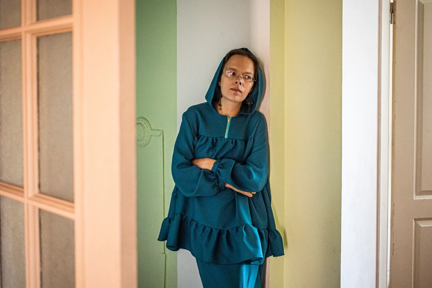 Низовкина идёт по длинному коридору своей квартиры. Тускло светит лампа. «Я не чувствую себя одинокой, — размышляет она. — Да, у меня нет подружек. Это слишком легкомысленно. Говорить про маникюр и про детей — это не про меня. Зато у меня есть соратники, и их много. Тут более суровые отношения, мы ближе и жёстче друг к другу. Это отношения воинов в разведке. Соратники каждый раз встречают меня из ИВС. Я чувствую такую поддержку, что никогда не скучаю и не тоскую».