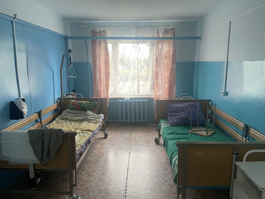 Четырёхместные палаты делятся на женские и мужские. На окнах светлые занавески, в углу — раковина. Для деревни почти роскошь. В одной из комнат на кровати лежит перевёрнутая табуретка: значит, место никем не занято. Сейчас здесь семь пациентов, половина кроватей пустуют. Но к зиме они заполнятся. Санитарки говорят, так бывает каждый год. Одиноким пожилым людям тяжело справляться с деревенским бытом, и они соглашаются переехать на зиму сюда.