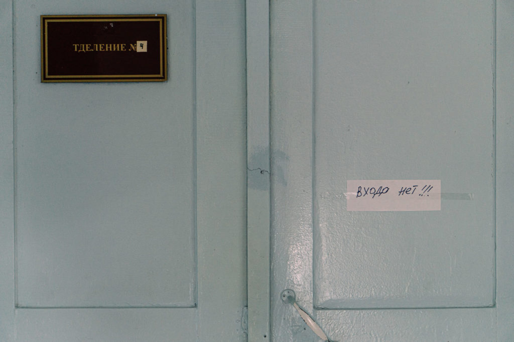 Дугаржап открывает ключом железную дверь, ведущую в спецотделение. В левом крыле, где находятся палаты, когда-то учились младшие школьники и была библиотека. В бывших классах нет дверей, все пациенты — на виду, лежат под цветными одеялами. Лиц не видно. Сонный час.