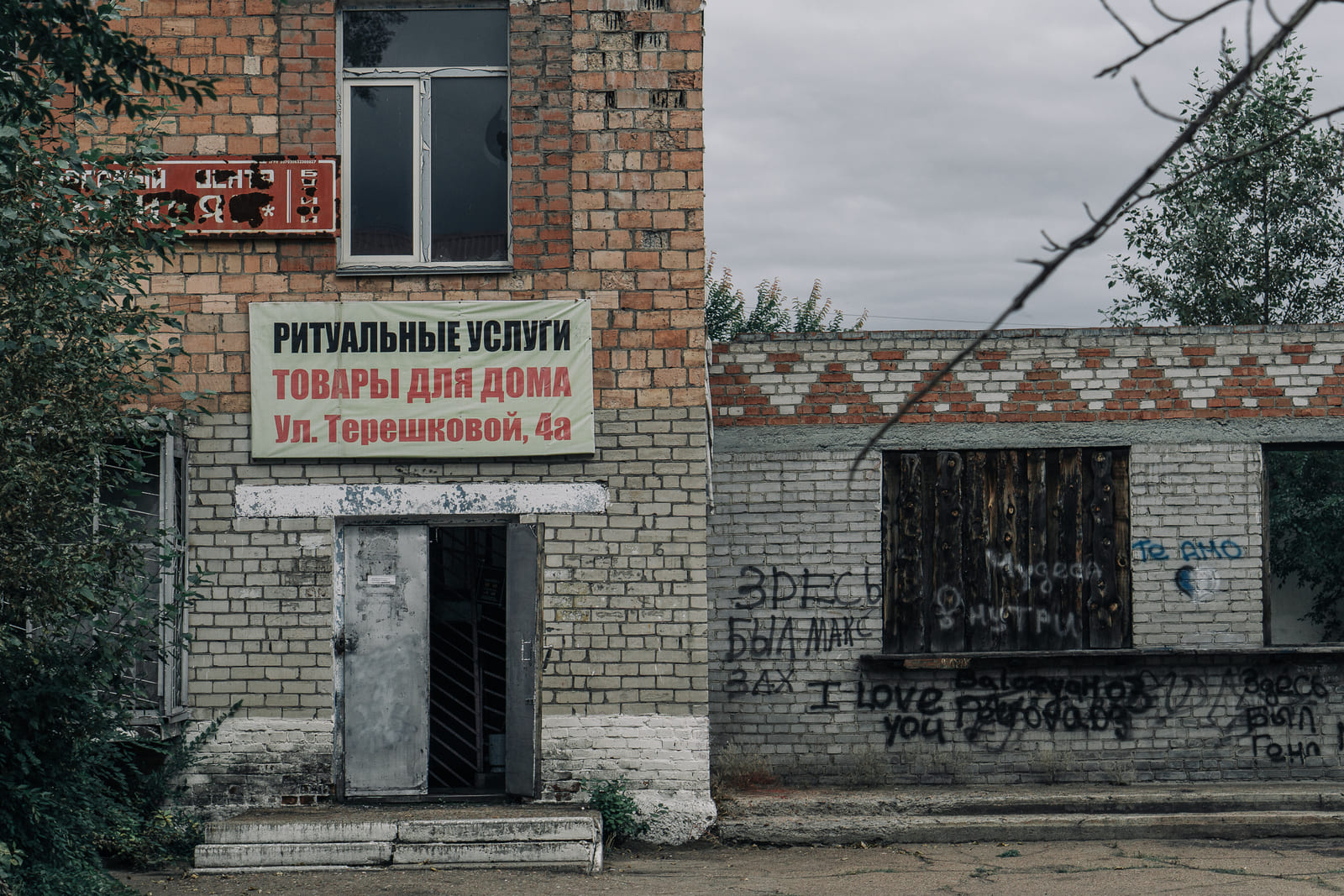 Продавщица Надежда Яковлева про побег тоже вспоминает мало. «Я сначала вроде испугалась, а потом мне муж говорит: „Эти товарищи в Новой Бряни не остались бы, дальше побежали“. И я успокоилась». Яковлева сидит за прилавком, за ней — железные вёдра, шампуни и утюги. Слева — похоронные венки, в подсобке — гробы. Надежда работает в магазине «Ритуальные услуги. Промтовары»: хозяйка решила объединить две свои торговые точки, чтобы меньше платить за аренду. Яковлева говорит, что главная беда в посёлке — резко выросшая смертность. «И с коронавирусом умирают, и без. И старые, и молодые. Всякие умирают, — говорит она. — В декабре я сама сына похоронила, онкология, ему было 44 года. Вот это страшно». Надежда замолкает.