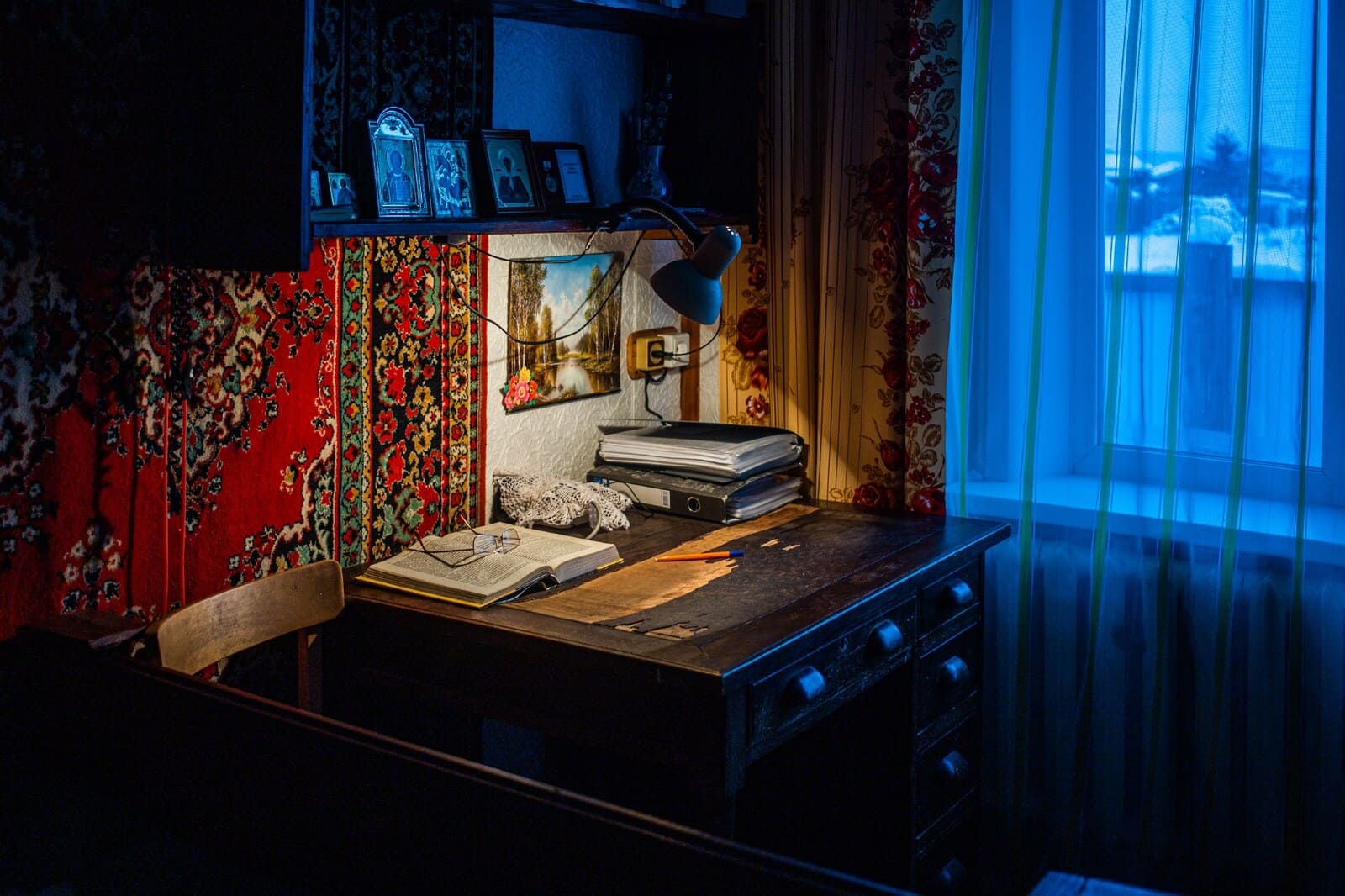 Знак «Почётный работник образования РФ» стоит у Космачёвой на полке рядом с иконами