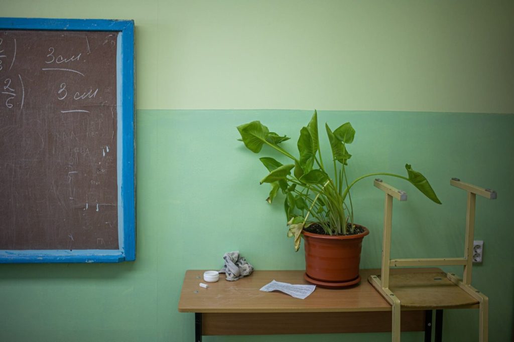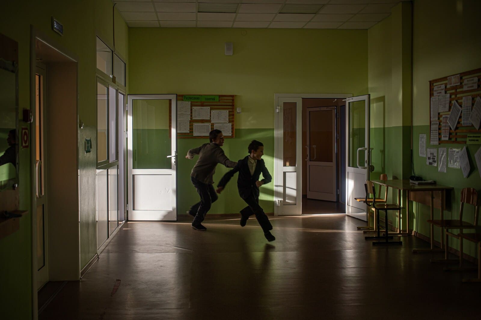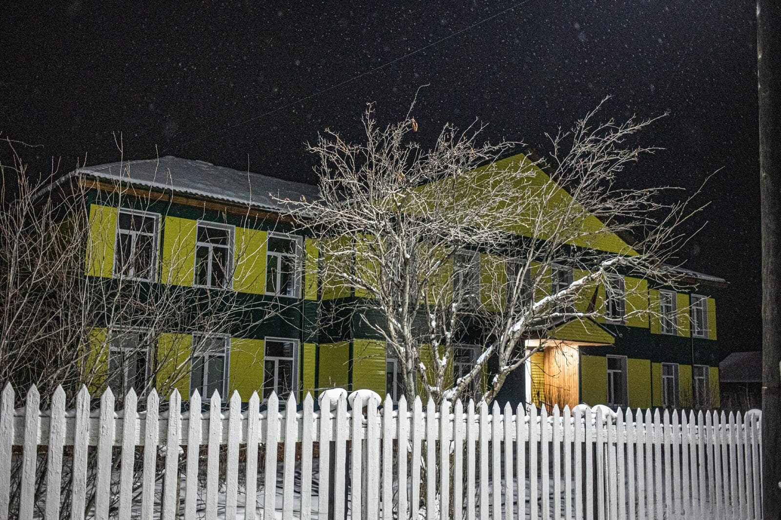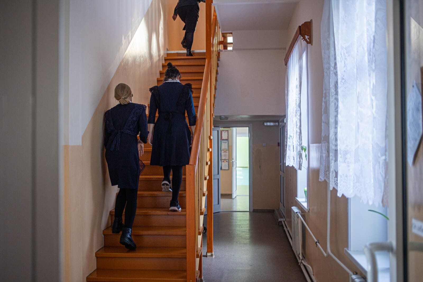 Школа в Бирюльке — деревне на 350 человек — двухэтажная, деревянная, постройки 1960 года. Три года назад здесь сделали капитальный ремонт, старые стены снаружи обшили жёлтым и зелёным сайдингом, а изнутри — гипсокартоном. Поставили белые пластиковые двери и стеклопакеты. Только лестницы остались прежние — деревянные, выкрашенные коричневой масляной краской.