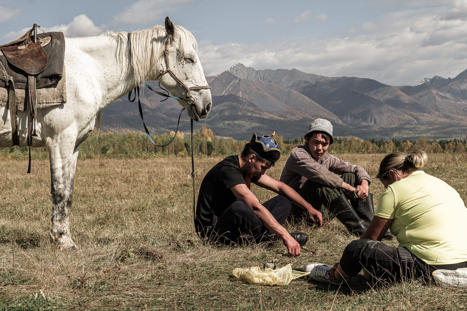 Долгор и Жалсып предлагают провести фотосессию у подножия Саян — на фоне горы Алтан Мундарга (в переводе с бурятского «золотая вершина»). Главное состязание костоломов в Бурятии названо в её честь.