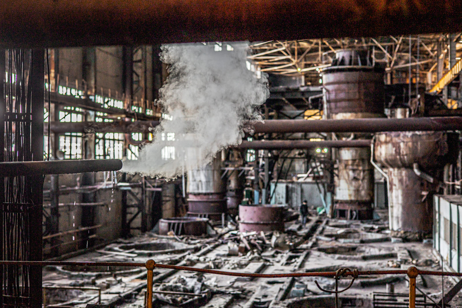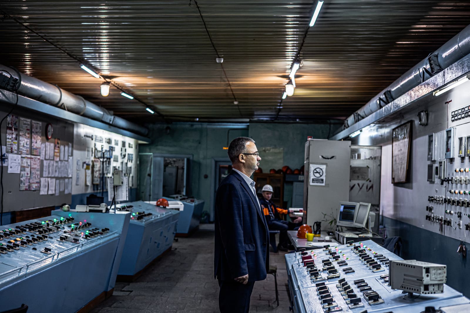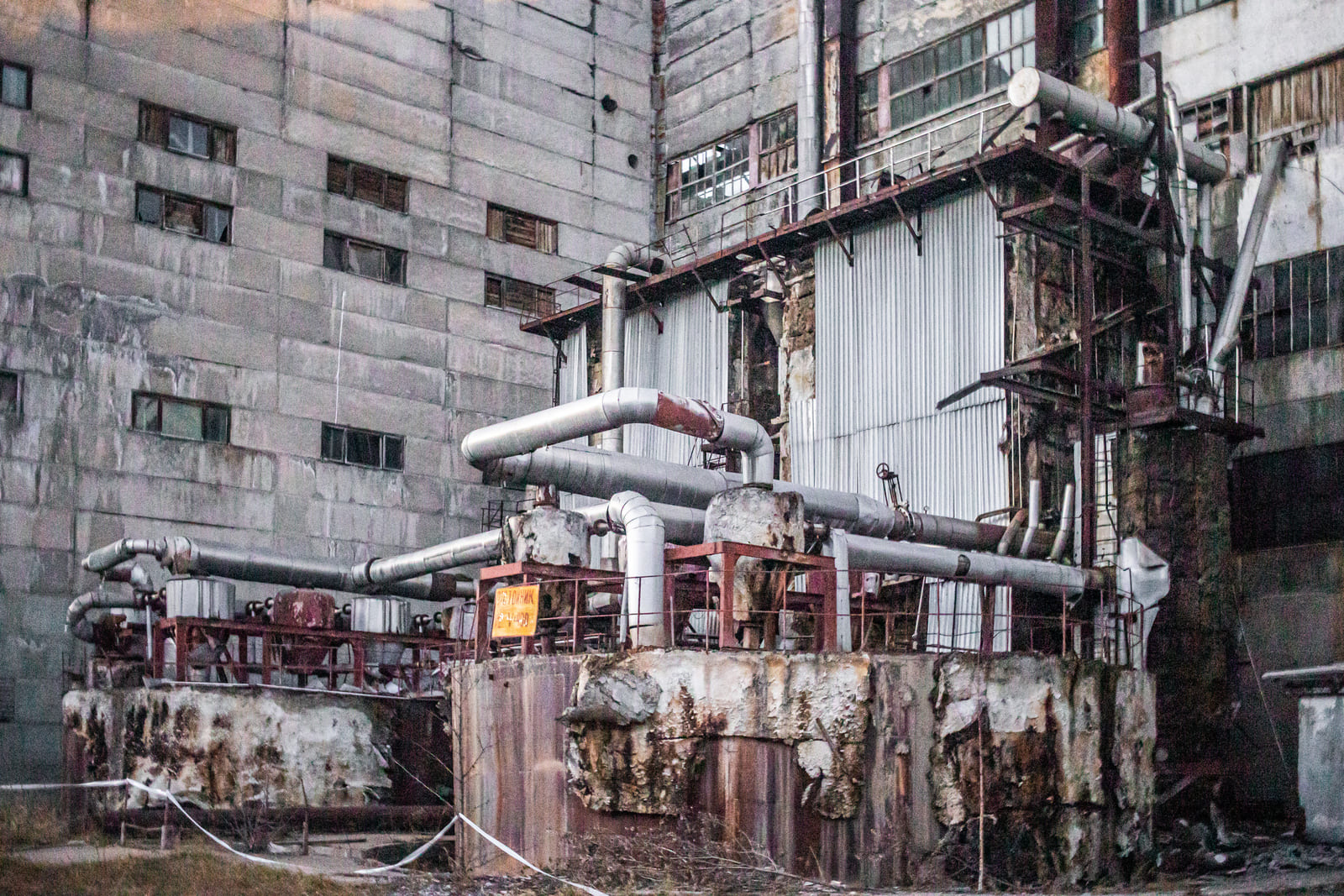 «Вот котёл — это самое опасное место, он может взорваться элементарно», — подводит Фёдор к кубу, на который нанизаны лестницы, люки и датчики. Котёл — высотой с 12-этажный дом. Его крыша тонет в клубах пара и темноте. Справа от котла стоит сломанный советский автомат «Газированная вода».