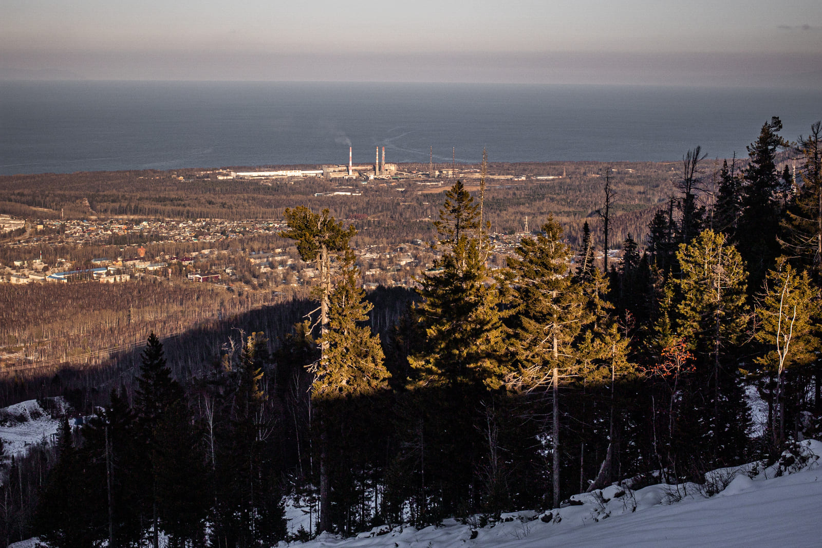 Байкальск находится на самом берегу Байкала, с другой стороны над ним нависают горы Хамар-Дабана. Это самый дождливый и снежный город в Иркутской области.
