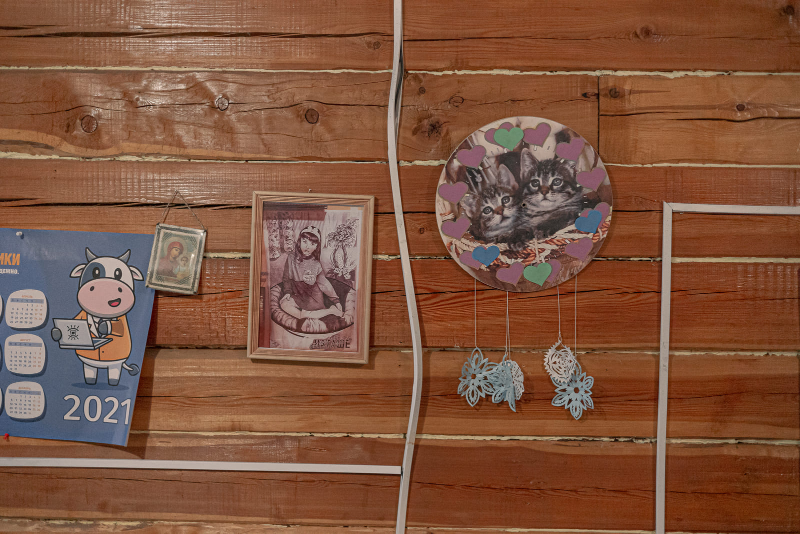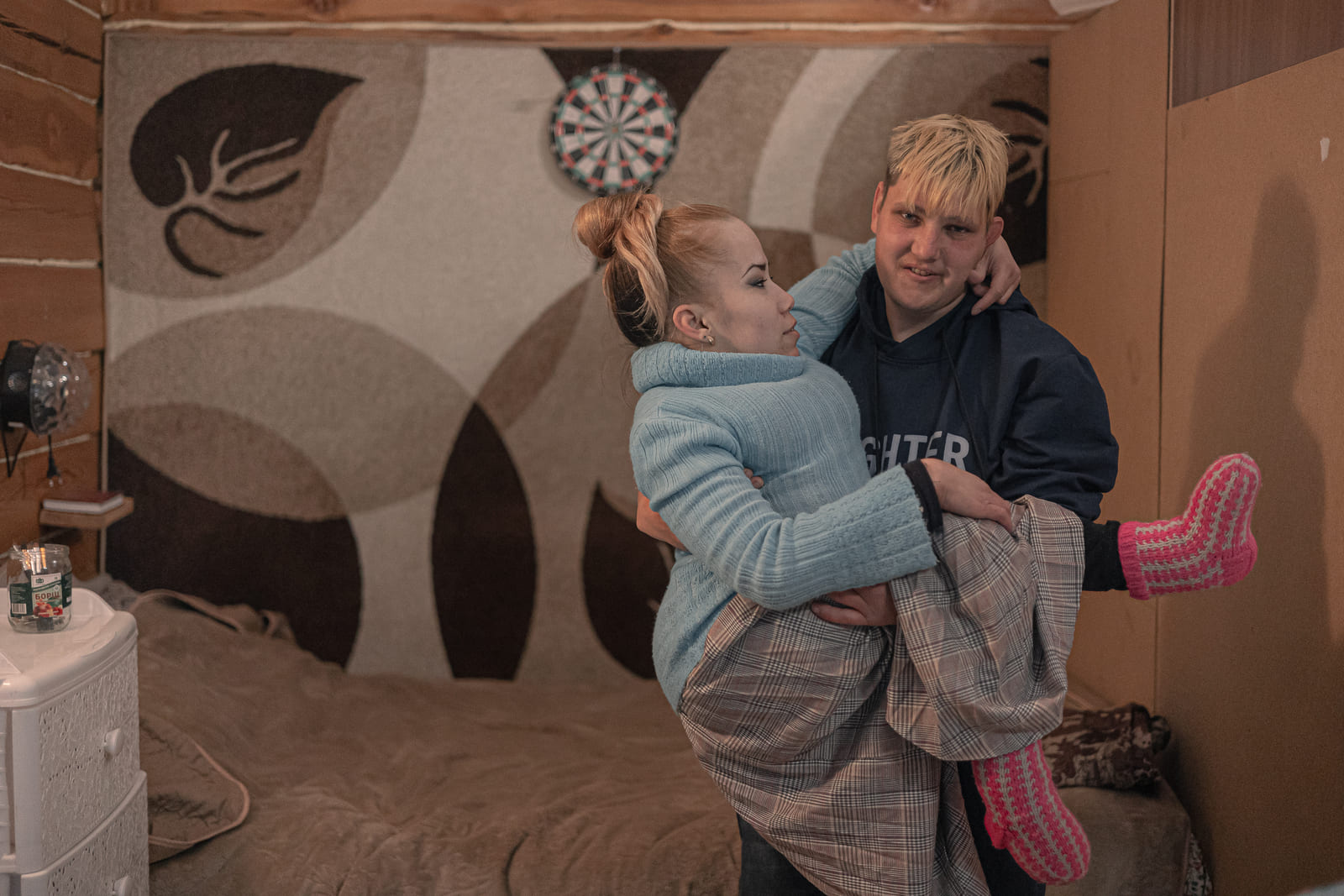 Ольга и Никита — показательная пара, у которой часто берут интервью журналисты. У них — единственных — двуспальная кровать в квартире. Рядом с кроватью висит фотография двух котят. Она обрамлена бумажными сердечками.