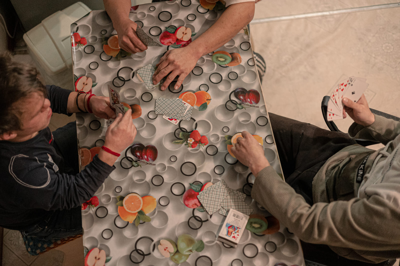 Играть в дурака ребята научились в интернате. Про интернат они вспоминают часто, но возвращаться туда не хотят. «Главное, тут не бьют. Я вытащил счастливый лотерейный билет!» — говорит Тумэн. «И свобода есть, — добавляет Дима, тасуя колоду. — Хочешь — гречку на ужин вари. Хочешь — суп с лапшой».