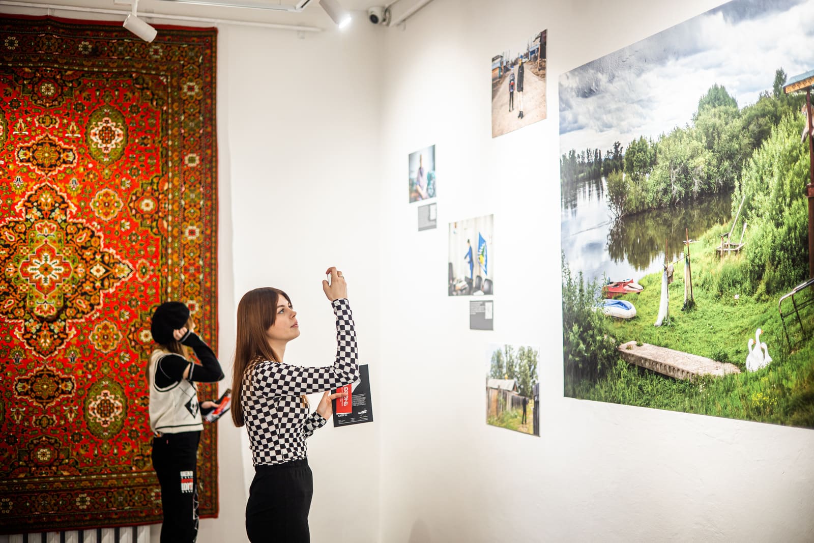 Открытие выставки началось с авторской экскурсии Антона Климова. Он рассказал, почему на входе посетителей встречает странная пластиковая кабинка с синими руками-перчатками. Это антиковидный блокпост, копия того, что был установлен в бурятском улусе Шулута в начале пандемии коронавируса.