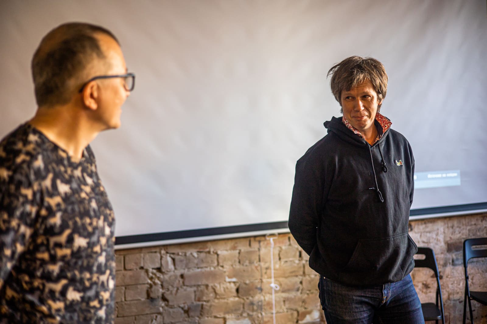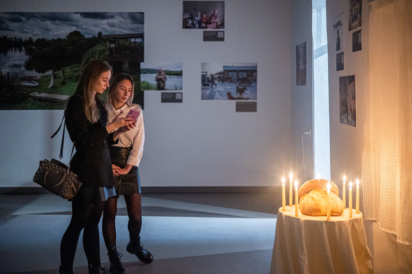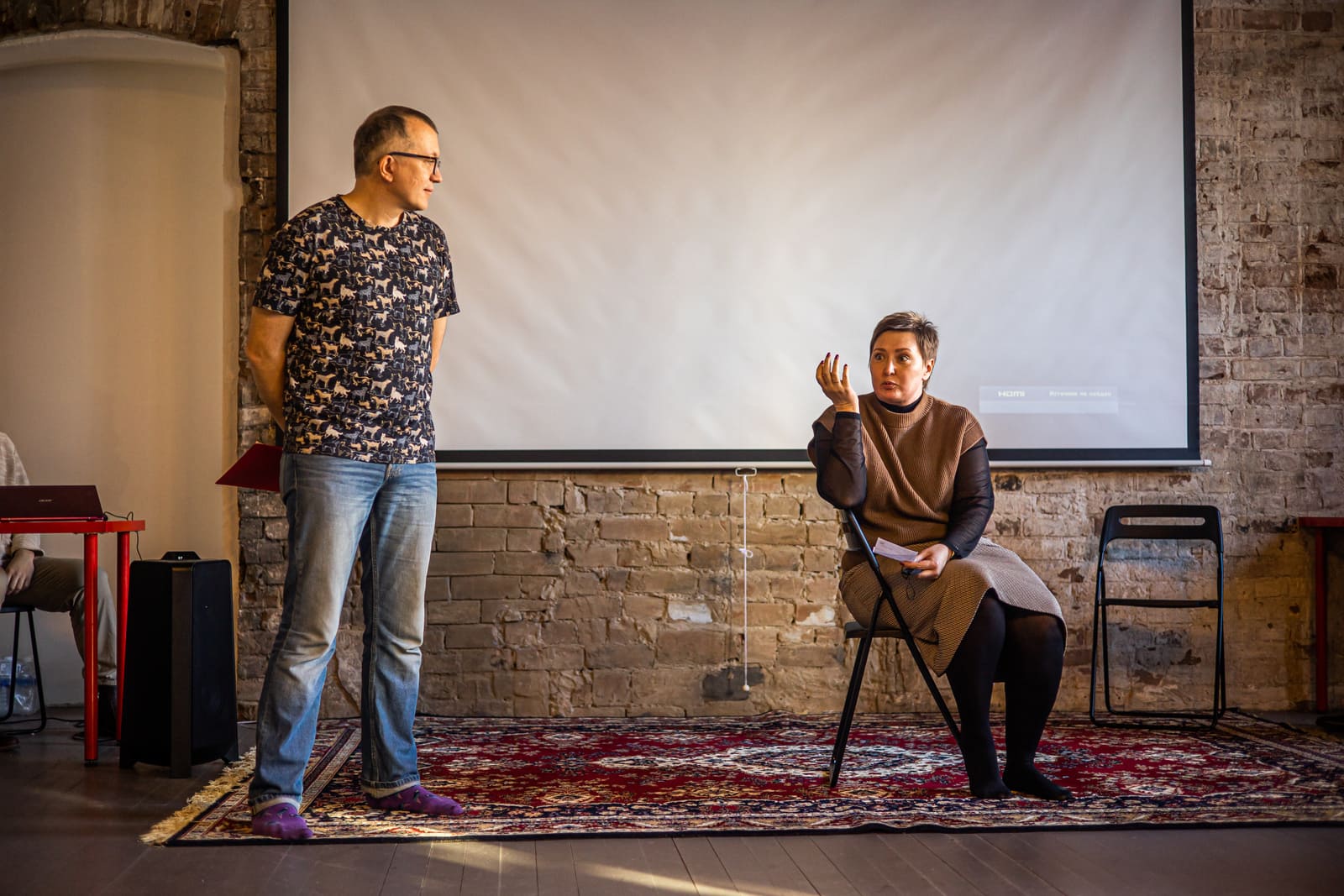 В день открытия выставки посетители смогли вживую познакомиться с некоторыми героями текстов «Людей Байкала». Они приехали, чтобы рассказать свои истории и поговорить о том, почему они остаются в глубинке. Модераторами стендап-выступлений были иркутский политолог и публицист Сергей Шмидт и историк, которому недавно присвоили статус иноагента, Алексей Петров. После стендапов Октябрина Тимофеева из деревни Аргун провела мастер-класс по вязанию деревенских ковриков из дранки — полосок ткани. Октябрина — одна из героинь «Людей Байкала».