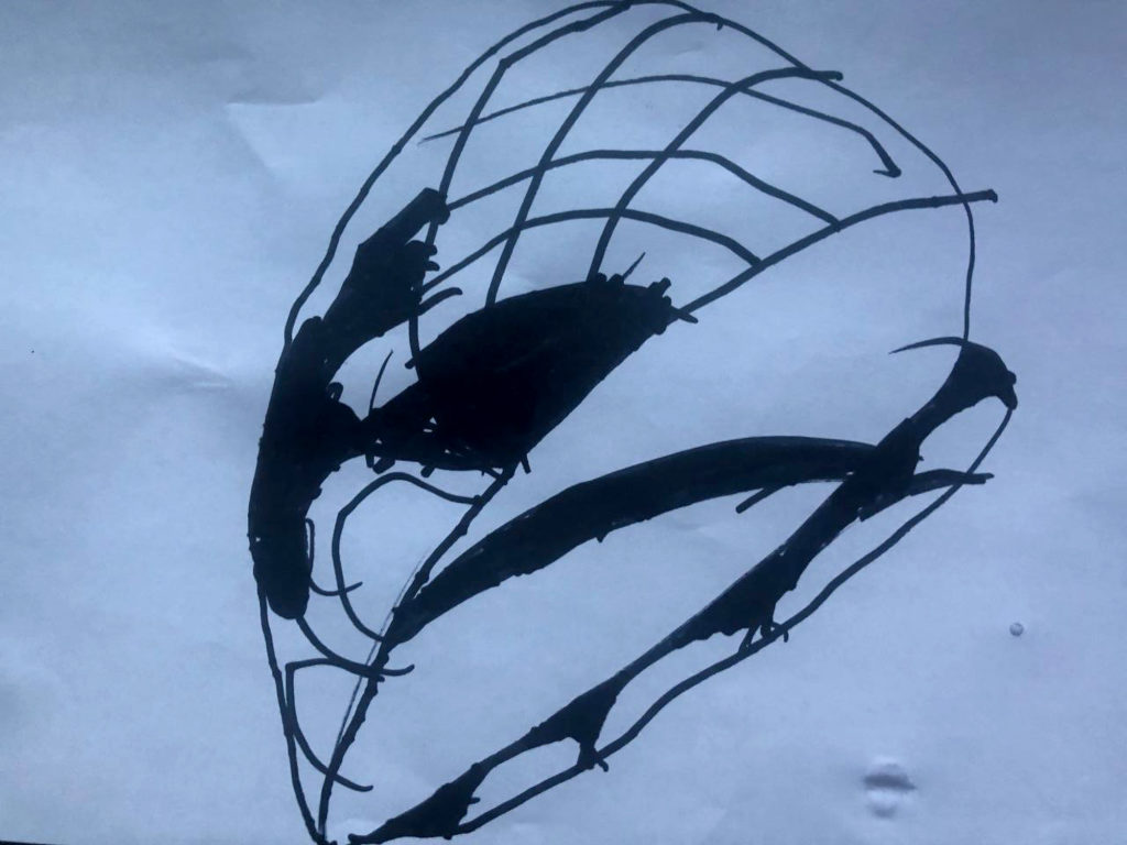 Первую неделю с нами в доме жил старший сын с невесткой и семилетним внуком. Потом они уехали на родину моего первого мужа — в Кировоградскую область. Чтобы отвлечься во время воздушных тревог, внук рисовал под лестницей. Какие-то странные фигуры, лица, много чёрного цвета. Художник он так себе, честно говоря. Но, когда мы уезжали из дома, я почему-то взяла его рисунки на память. В моём доме остались фотографии прабабушек и прапрабабушек дворянских кровей, остались письма с фронта моего двоюродного дедушки, который погиб во Второй Мировой войне. Всё осталось в прошлом. Я взяла только рисунки внука.