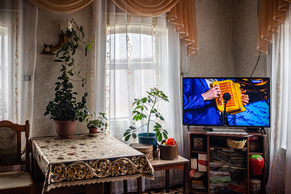Телевизор сейчас занимает центральное место в деревенском интерьере. Недавно я ездил в отдалённую деревню на севере Иркутской области. Там свет дают на несколько часов в сутки. Но зато в каждом доме стоят по два телевизора. В зависимости от достатка людей, это либо маленькие, либо гигантские плазмы.