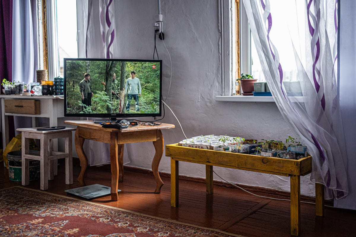 Раньше икона была окном к Богу, а сейчас её место занял телевизор. Ему люди в деревне отдают много энергии, «молятся» на него.