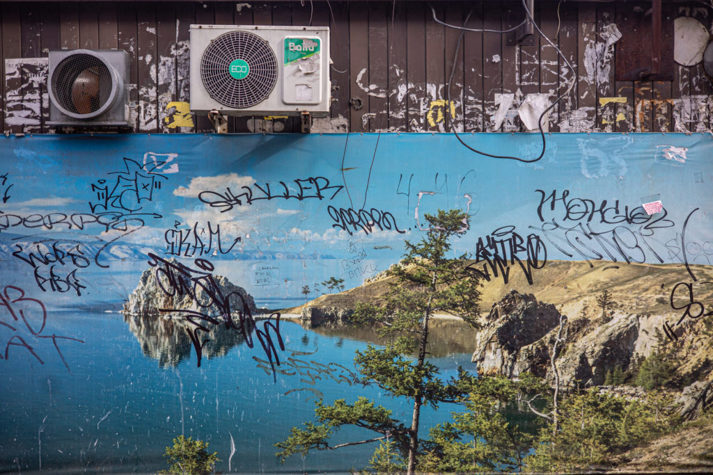 Кафе в посёлке Нижнеангарск — самой северной точке Байкала. Фотообоями с видами природы, цветами обычно украшают стены в деревенских домах и кафе.