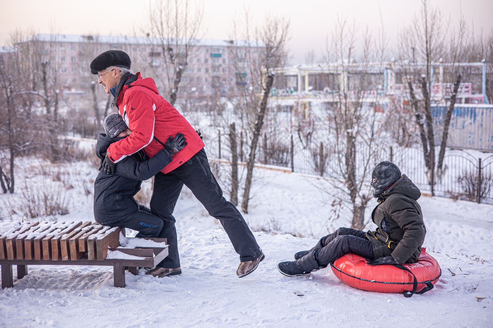 «Отвали», — говорит Владимир Орноев заведующей городским парком аттракционов Надежде Щукиной. Щукина только что пожаловалась Орноеву, что в парке не хватает «ватрушек». Она остановила мэра возле ледовой горки, с которой можно скатиться прямо на замёрзшую Ангару.