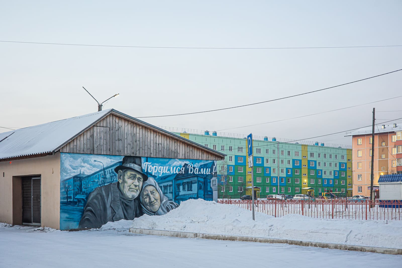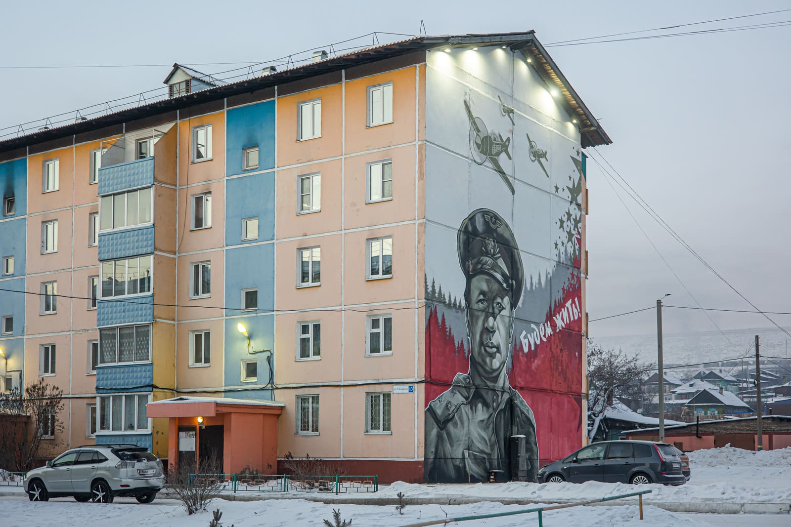 Январь 2023 года. Мэр Свирска Владимир Орноев стоит возле фонтана на улице Лермонтова в Свирске и разговаривает с двумя мальчиками лет восьми-девяти. На Орноеве — ярко-красная куртка и меховые унты. В городе — морозы, и мальчики ёжатся от холода. «Ну как вам рисунки? Что чувствуете?» — спрашивает 61-летний Орноев, показывая на торец ближайшего дома. На нём нарисованы два подростка-кадета, между ними — Кремль.