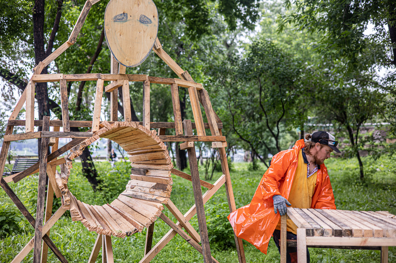 Кроме того, на фестивале есть скульптуры слонёнка, бабочки, медитирующего зайца и кита, который выныривает из земли. Их можно увидеть до конца августа.