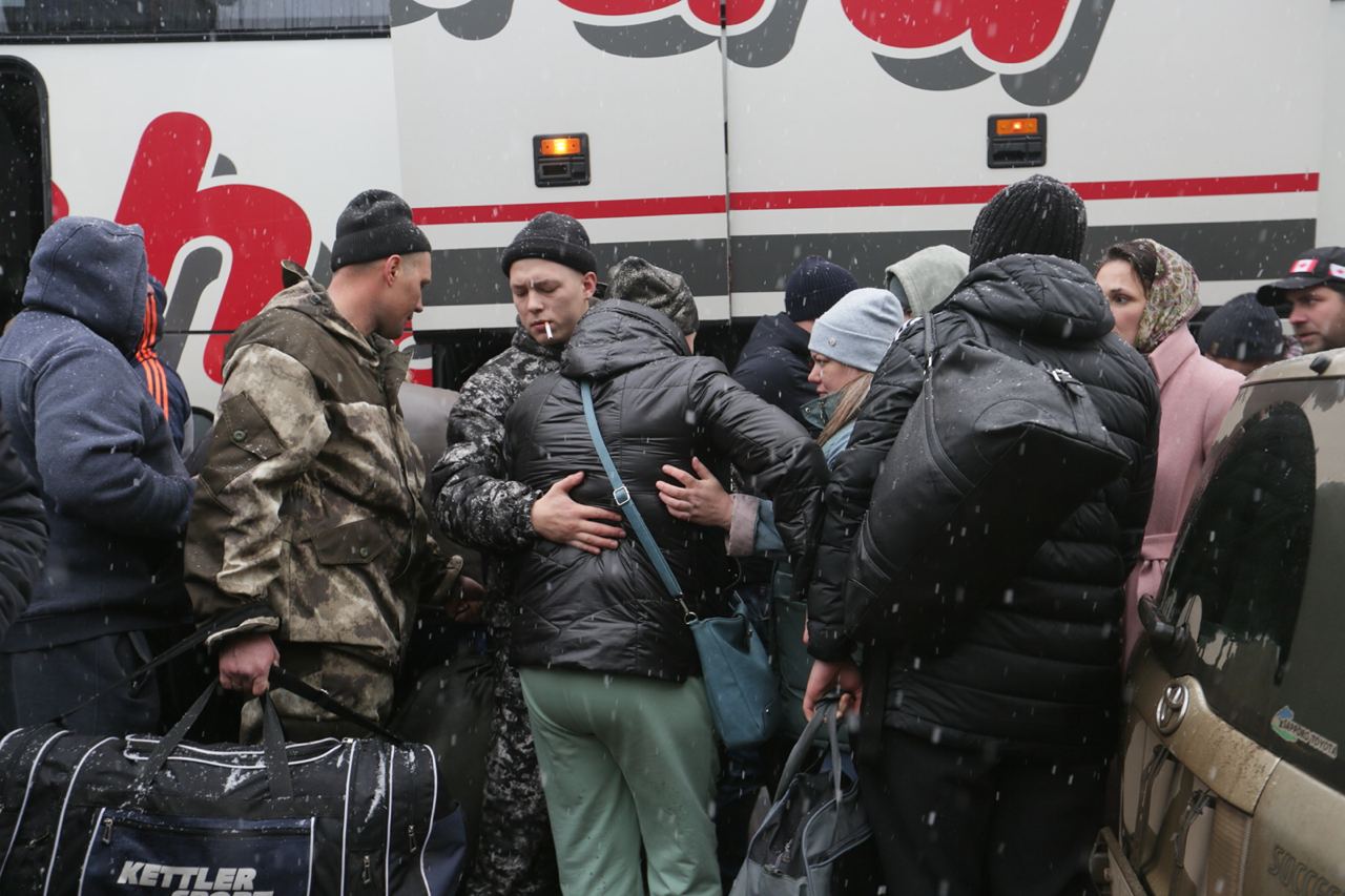 Рано утром мобилизованные из Иркутского района собрались у военкомата в посёлке Дзержинск. Некоторым из них повестки принесли домой, другим позвонили из сельсовета и сказали явиться за повесткой, кому-то её вручили на работе. «Очково, страшно, а что сделаешь? — говорил корреспонденту IRCITY один из мужчин. — И если мы туда не поедем, то они сюда придут». Женщины плакали. 24 сентября 2022 года.