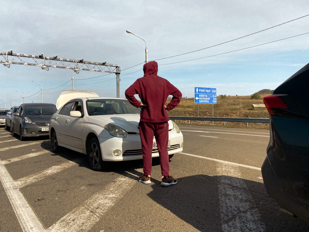 Город Кяхта, граница России и Монголии. Очередь более чем из 80 машин. Автобусы пропускают без очереди, пассажиры – в основном мужчины. Некоторые из них поговорили с журналистом ЛБ, рассказали, что уезжают, потому что не хотят на войну. 26 сентября 2022 года.
