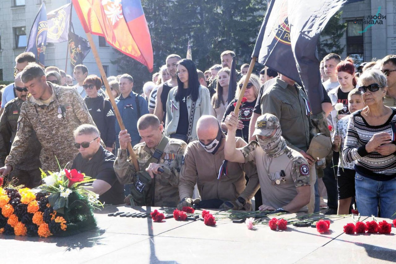 В конце августа, через три дня после смерти главы ЧВК «Вагнер» Евгения Пригожина, в центре Иркутска открывали памятник погибшим наёмникам ЧВК «Вагнер». В толпе стояли родители с детьми, мужчины в камуфляже. Женщины средних лет втроем сжимали красное знамя воевавшей во Вторую мировую войну стрелковой дивизии. Мальчик лет двенадцати двумя руками держал древко, на котором развевался чёрный атласный флаг с черепом — символ частной военной компании.