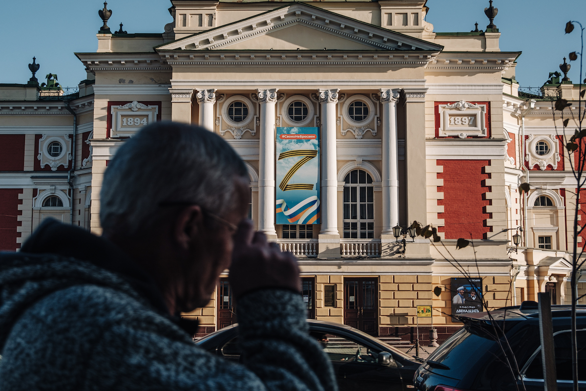 В Иркутске одним из самых патриотичных оказался драматический театр им. Охлопкова. Точнее, его директор Анатолий Стрельцов. Он повесил Z-баннер на фасад театра в апреле 2022 года. Баннер несколько раз закидывали тухлыми яйцами и зелёнкой, но директор проявил стойкость и не убрал надпись. В июне Стрельцов передал деньги от продажи билетов в помощь российским военным. В июле вместе с артистами поехал на передовую с концертами. Директор театра сказал «Людям Байкала», что поддерживать военных деньгами — это его «святой долг».