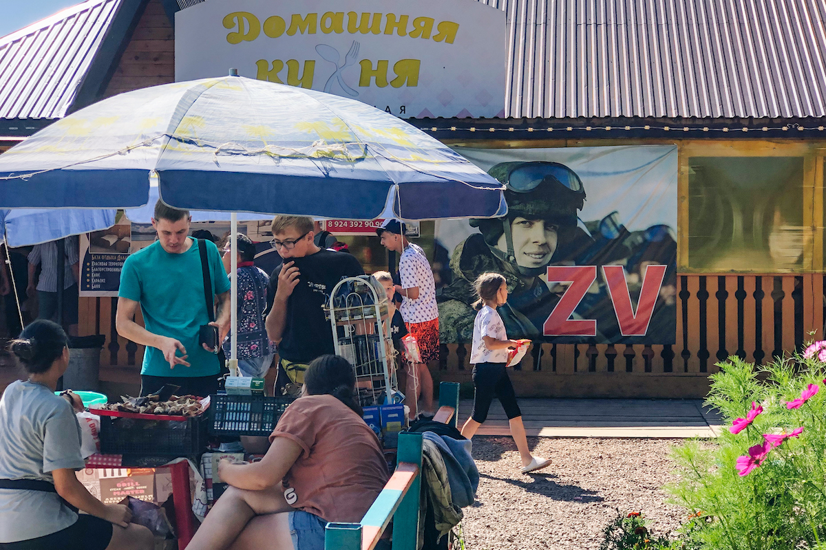 Некоторые заведения общепита вписывают V и Z в свои названия. Так, например, поступили владельцы кафе «Бууза» в городе Усть-Илимске Иркутской области. Наши журналисты побывали в Усть-Илимске у родственников Руслана Зинина — он выстрелил в местного военкома, чтобы остановить мобилизацию. Сейчас Зинина судят.