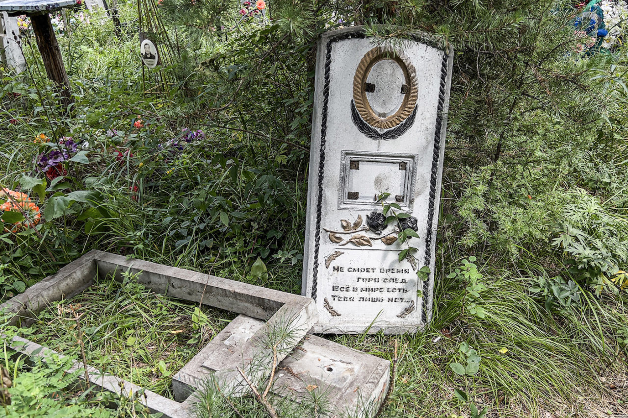 Подобраться к памятникам сложно, почти все ограды — в зарослях травы с человеческий рост. Из-за плодородной почвы и обильных осадков убирать летом там бесполезно, объясняют местные жители: «Нарастёт за неделю». С краю кладбища похоронен Саша Бельский, сын Полины.