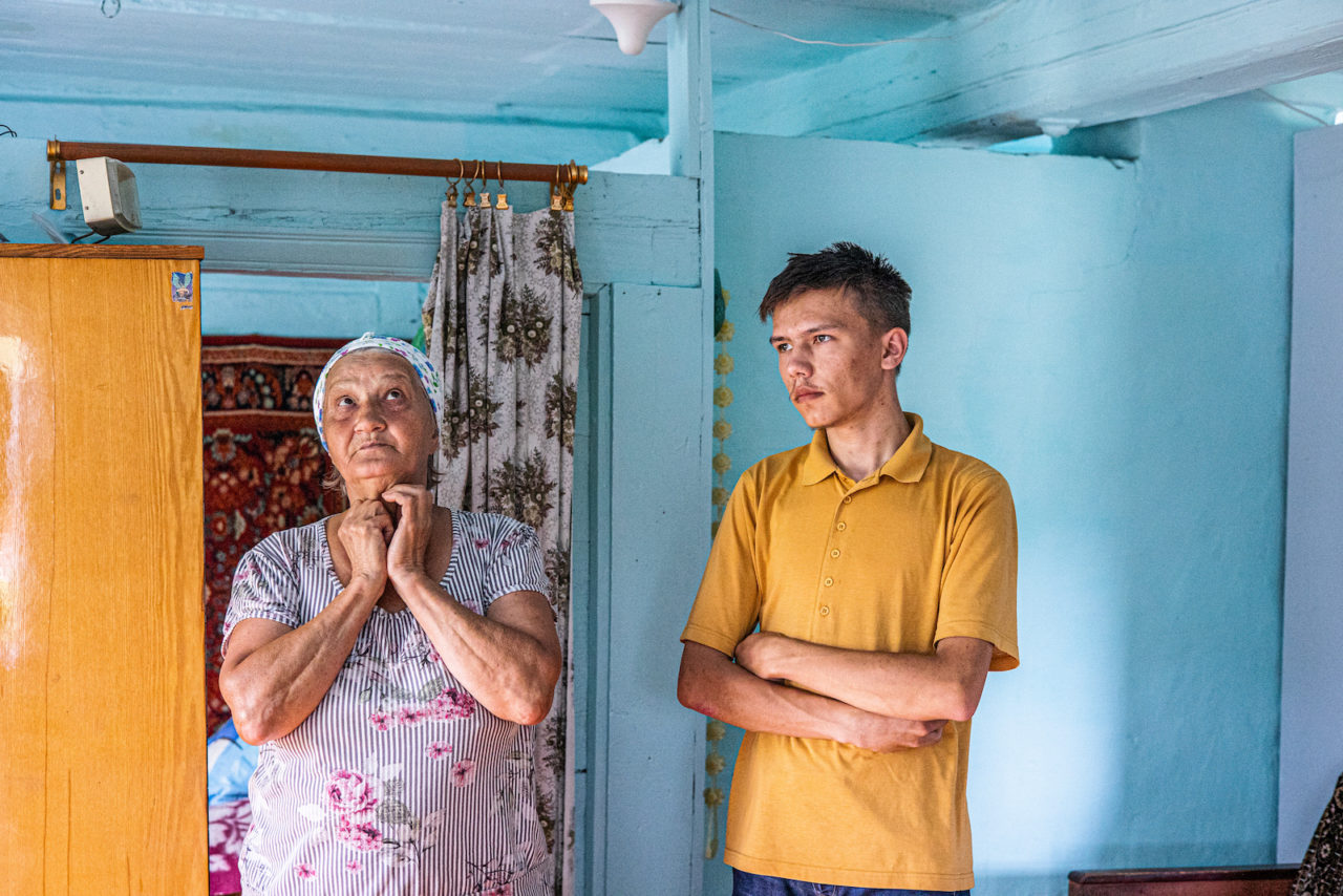 Мать Романа Татьяна и его старший сын Никита в родовом доме в Усть-Тальме