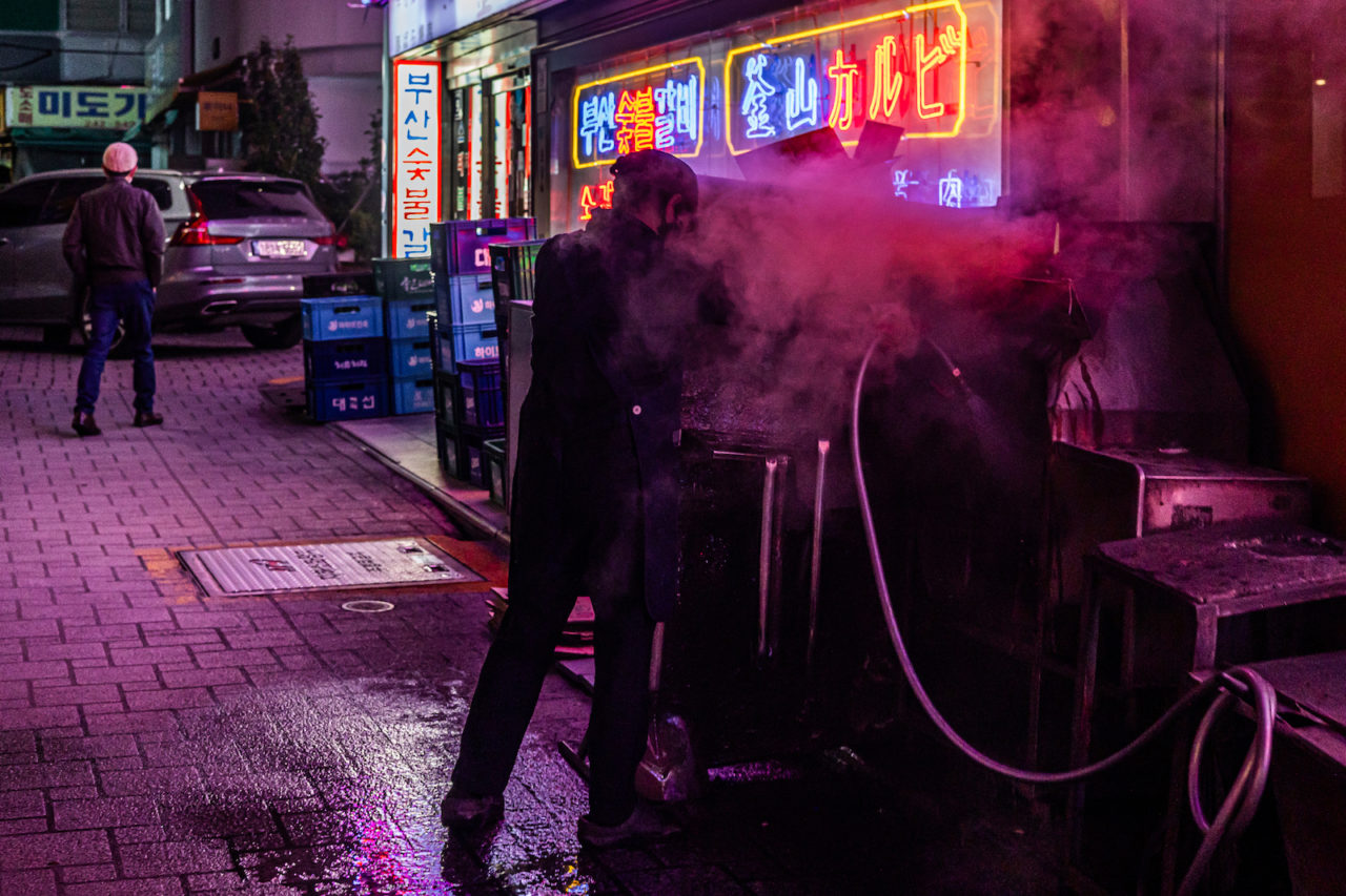 Мы в двадцати минутах езды от тусовочного центра Пусана — района Сомен. Вокруг жилые и офисные многоэтажки. На первом этаже здания — ресторан, на втором и третьем — «самушиль». На окне по-корейски написано: «Рабочие всегда в наличии». Здесь набирают людей на стройки.