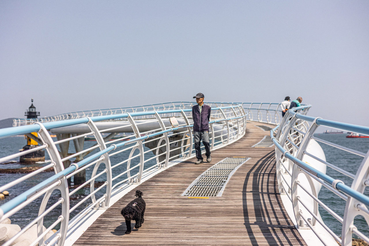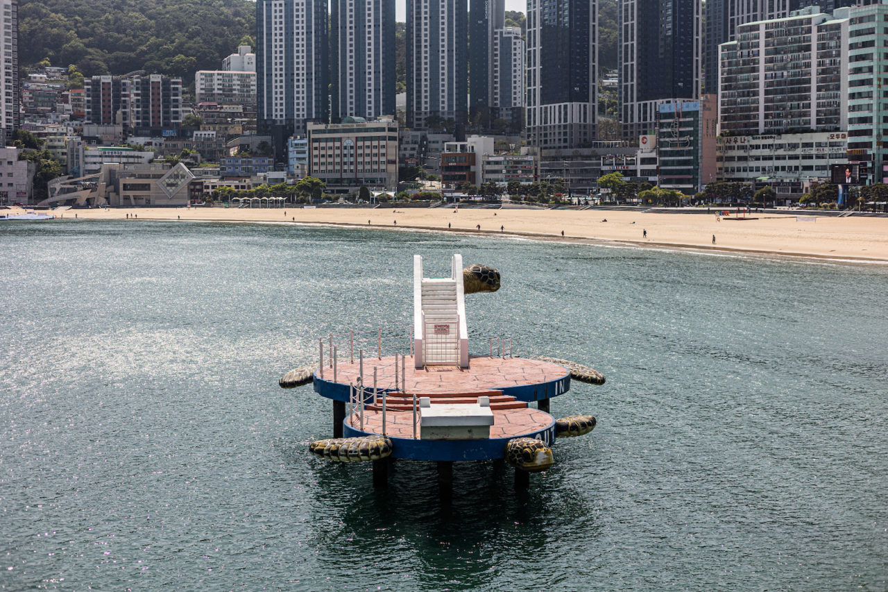 Город Пусан. Самый известный в Южной Корее пляж Хэундэ. По деревянному настилу прогуливаются, держась за руки, парочки, на берегу рабочие строят из песка фигуры древнегреческих героев — готовятся к ежегодному фестивалю. Навстречу идет кореянка с малюсенькой собачкой в коляске, похожей на детскую.