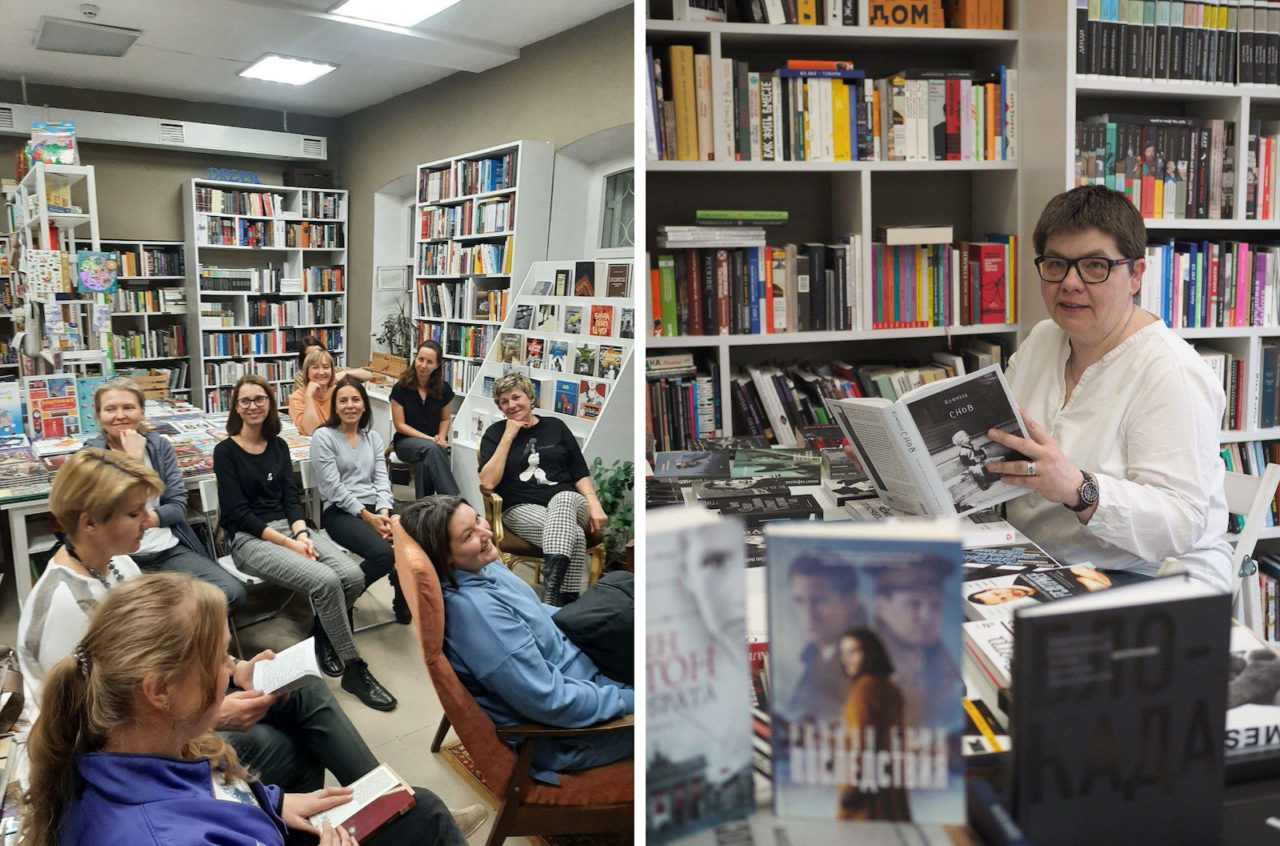 Одним из популярных офлайн-мероприятий стал книжный клуб «Переплёта», который существует уже несколько лет. Участницы — преимущественно женщины разных поколений, от подростков до пенсионерок. По мнению Мироновой, их объединяют любовь к чтению и приверженность гуманистическим ценностям. Но иногда они спорят о литературе так, что «дым коромыслом». В «Переплёт» также проводят паблик-токи с поэтами, писателями, иллюстраторами и психологами. Но самое посещаемое мероприятие — гаражная распродажа. В сентябре на ней объединили продажу книг со скидками, лекции о свободе и критическом мышлении и выступления музыкантов.
