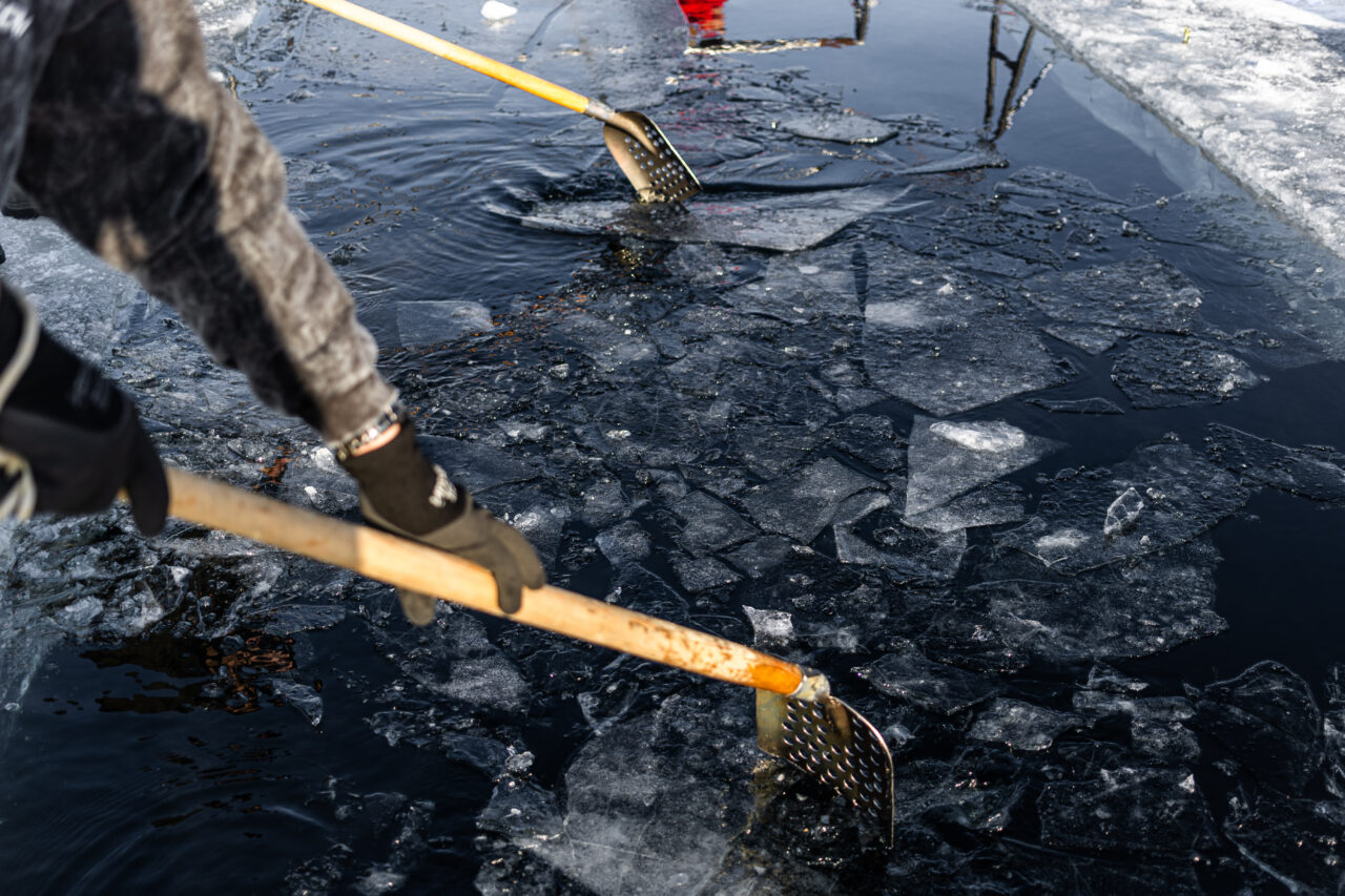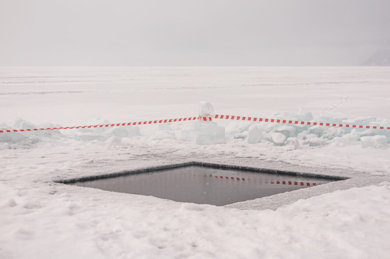Для фестиваля во льду вырезали две майны — проруби. Одну, площадью десять квадратных метров — для соревнований, другую — для тренировок и пробных погружений.